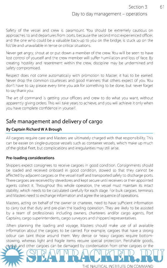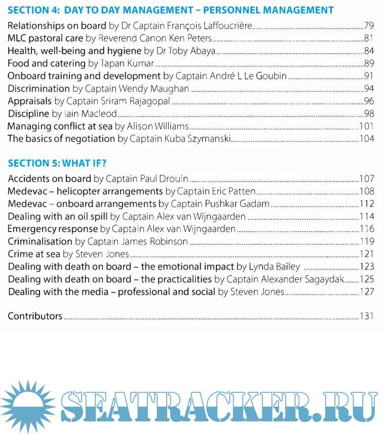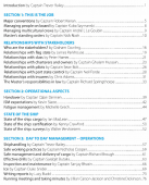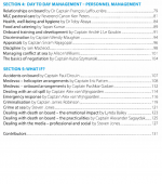 The book has its own voyage plan that leads readers through the basics of command, looking at legislation and how it impacts the day job and relationships with the various stakeholders. The focus on day to day management includes operations and personnel management.