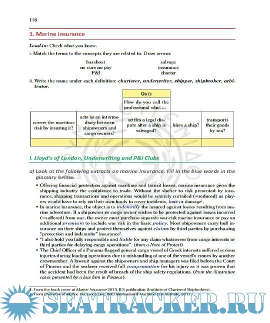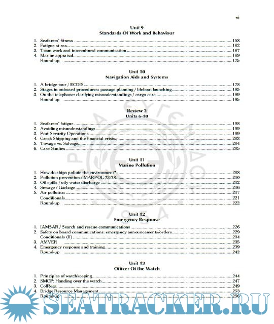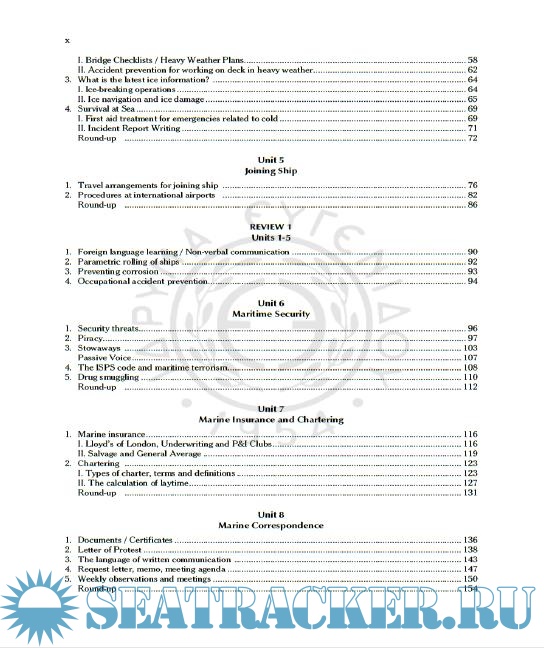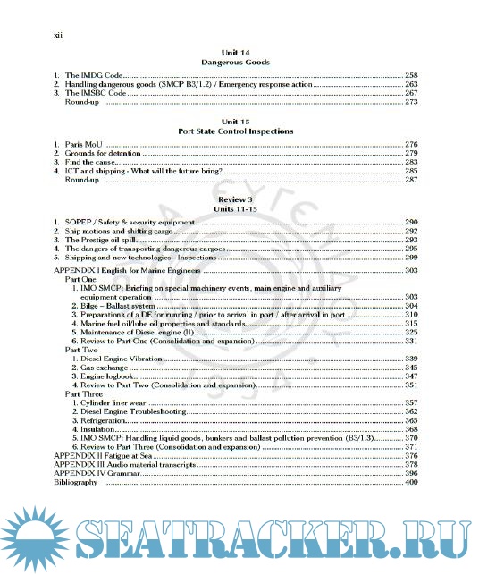 Year: 2016 Language: english Author: Papaleonidas, P. Genre: Textbook Publisher: Evgenides Foundation Edition: First ISBN: 978-960-337-125-0 Format: PDF Quality: eBook Pages count: 418 Description: In an eight-semester academic curriculum of a merchant marine academy, the cadets are required to attend studies for 6 semesters and attend on-board training for 2 semesters. his textbook covers material for training of the cadets according to IMO model course 3.17 at the basic level for the semesters D, E, and F. For the Marine Deck cadets (in Greek=Πλοίαρχοι) there are 5 units per each semester, (and an introductory unit only for the D semester) and 3 reviews-with-exercises, one per semester. For the Marine Engineer cadets (in Greek=Μηχανικοί), their curriculum includes “selections” from the abovementioned 5 units per semester, plus “Appendix I: English for Marine Engineers”. The latter one is divided into 3 parts, each of which is scheduled to be taught in each of the D, E, and F semesters. The above classification of the units is shown on the Table of page 8, in the Introduction Chapter.