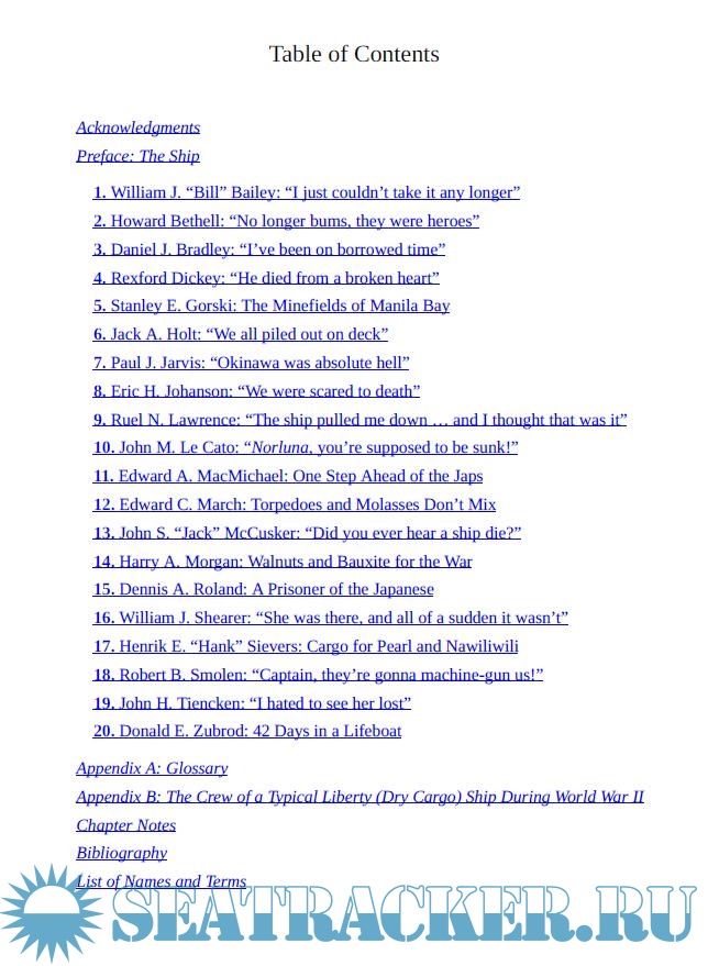 As per the author, “this is an oral history of the U.S. Merchant Marine in World War II and, as such, most of what you will read here will be taken directly from transcripts of the voices of the seamen themselves on tape.