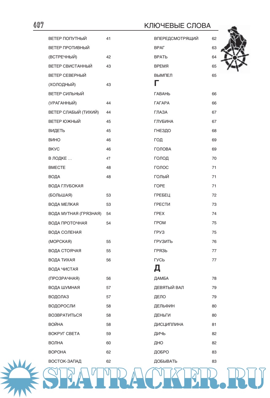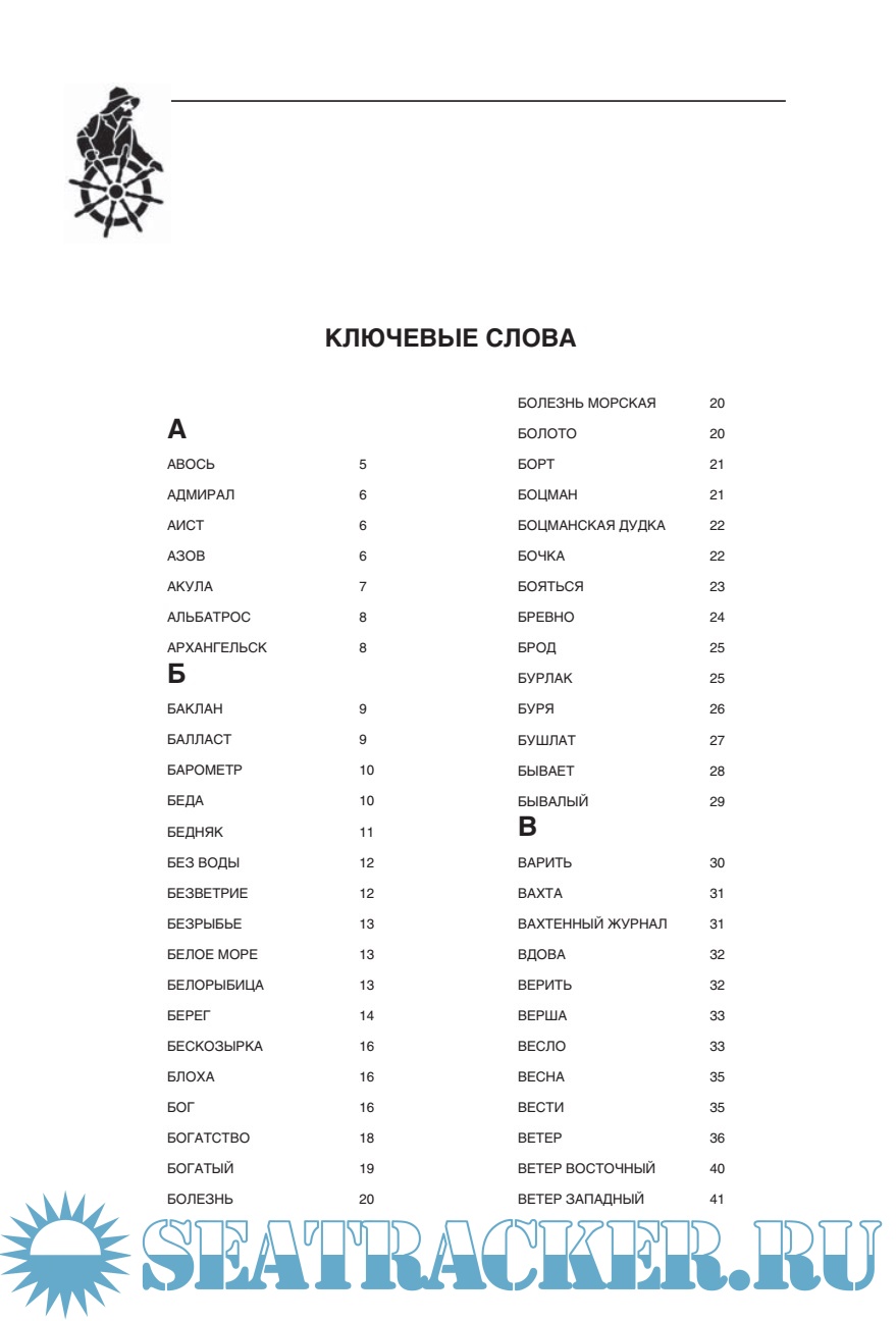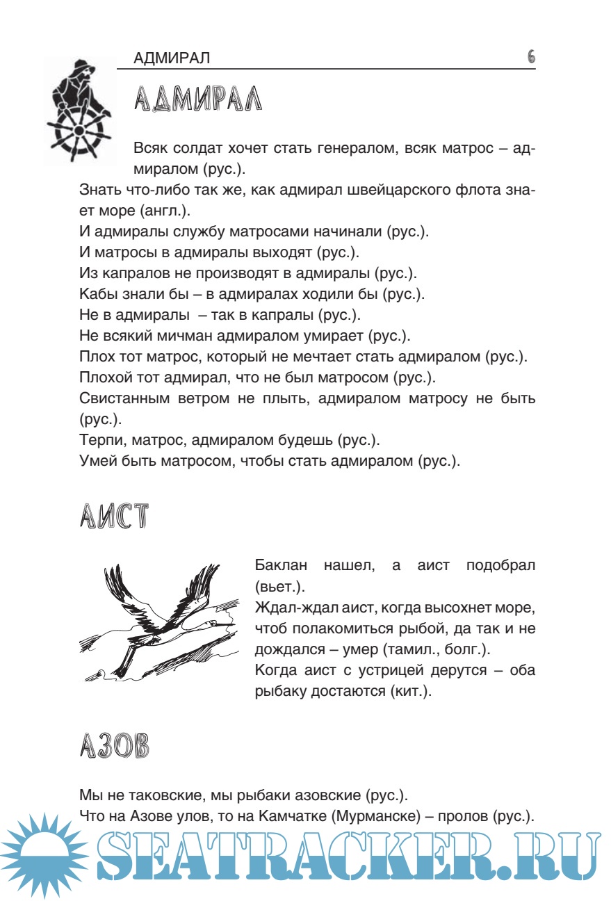 Описание: В предлагаемом Словаре представлено более 7000 пословиц и поговорок о море в переводе со 154 языков народов мира. В них отражены самые разные стороны «морской» деятельности и жизни человека, его взаимоотношений с морской стихией, флорой и фауной. Пословицы подобраны в гнезда по ключевым словам (всего 633 таких слова), которые расположены в алфавитном порядке. Словарь является первым изданием такого рода не только в отечественной, но и в мировой лексикографии.
