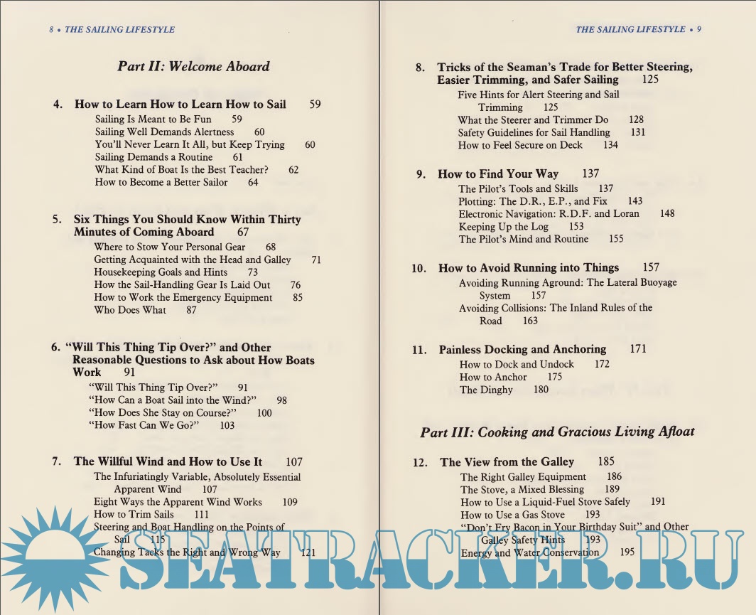 Description: Surveys the basic sailing equipment, explains how to sail a boat, and offers tips on living comfortably on a sailboat