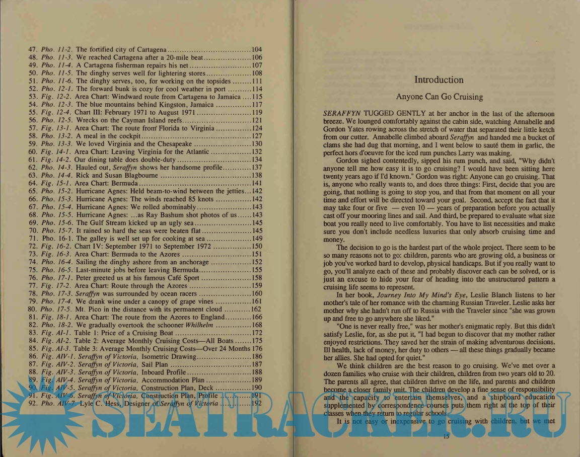 Year: 1992 Language: english Author: Lin and Larry Pardey Genre: Guide Publisher: Sheridan House Edition: First ISBN: 0-924486-36-8 Format: PDF Quality: Scanned pages Pages count: 200 Description: The cruising tale is full of the sights and sounds, the fragrances and native customs of foreign lands, especially Central American and the Caribbean. It is a story of a leisurely sail through the Gulf of Cortez and on through Panama Canal to the Azores and England. Cruising in Seraffyn is also a carefully thought out guide to living aboard a small boat, with fun and economy as the guide principles. Four appendices provide data that is vital for anyone comtemplating long distance cruising