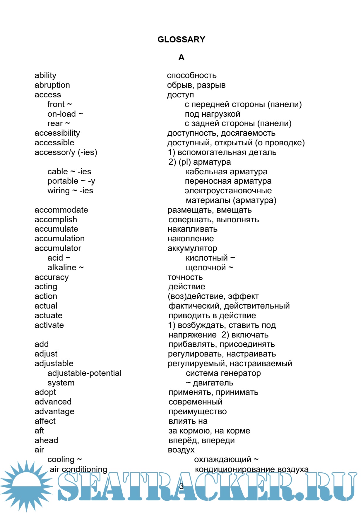 Основная цель словаря – способствовать пониманию студентами терминологии по современной судовой технике, активному усвоению функциональной лексики, необходимой в процессе развития навыков перевода и профессионального общения.