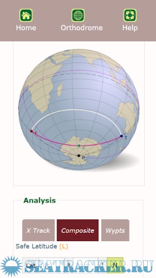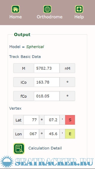 The great circle calculator (orthodrome) let’s you find the distance, initial course and final course between a departure and arrival position. It also calculates the vertex and performs some analysis: cross track analysis, safe latitude analysis and waypoint calculation along the great circle. The calculation details show different methods like ABC tables, Haversine and Napier. Read the help pages carefully.