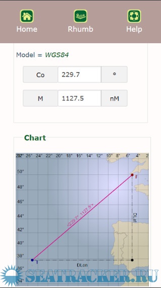 With the rhumb line (loxodrome) calculator you calculate course and distance between a departure position and an arrival position, or find the estimated position starting from a given departure position and a course and distance to go. The graphical representation is a real asset.
