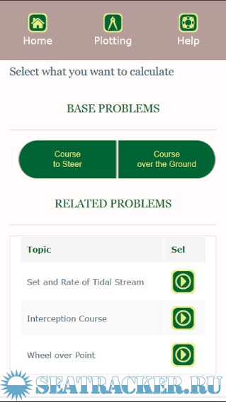 The chart plotting section treats the base problems: course to steer and course over the ground. Related topics were added like set and rate of tidal stream, interception course and wheel over point. All calculations have a graphical view, also clearly explained in the theory section.