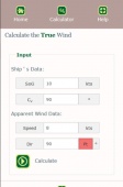 Description: Based on ship's data (heading and speed over ground), this nautical wind calculator returns true and apparent wind (speed and direction). Anemometers on board of a ship often measure apparent wind. This app lets you quickly convert to true wind.