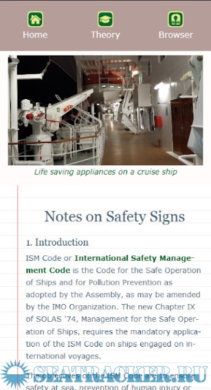 This theory section serves as a backup and makes this app a complete guide to safety signs on ships.