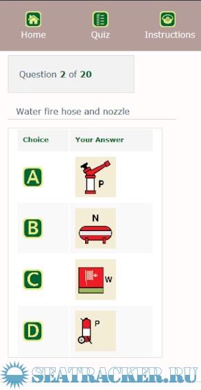 In the multiple choice quiz section you can test and further expand your knowledge in 2 directions: starting from the signs and choosing the correct explanation, or starting from the text and assigning the correct sign.