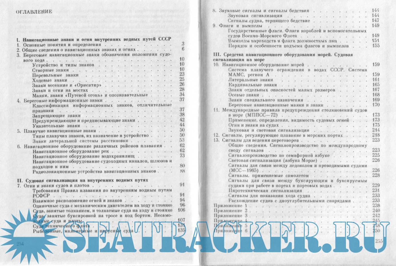 Описание: Пособие содержит основные сведения о навигационных знаках и огнях внутренних водных путей СССР, зрительных ( световых и дневных ) и звуковых сигналах судов, а также о навигационных знаках, огнях и судовой сигнализации, используемых при плавании и морских условиях.