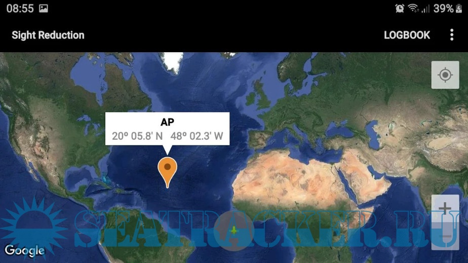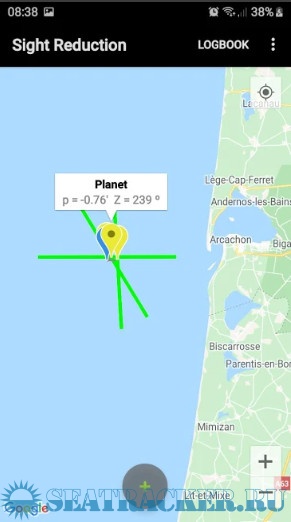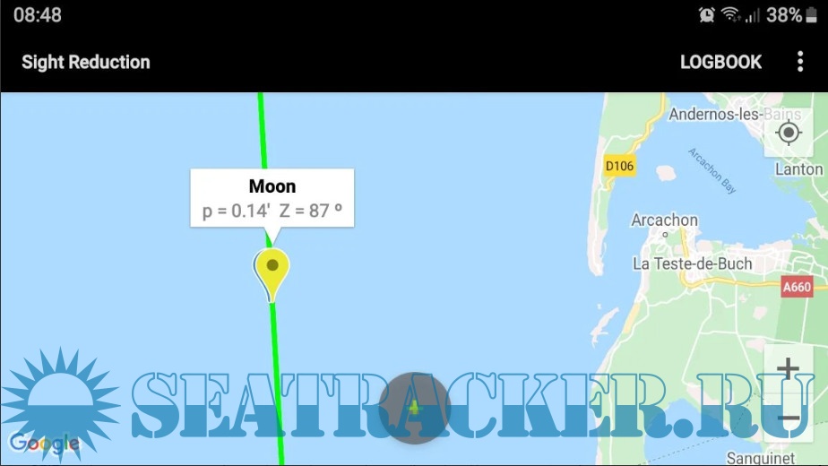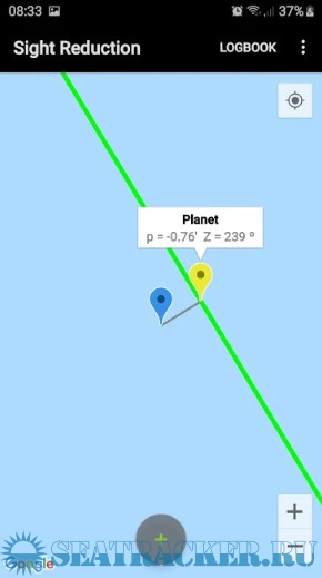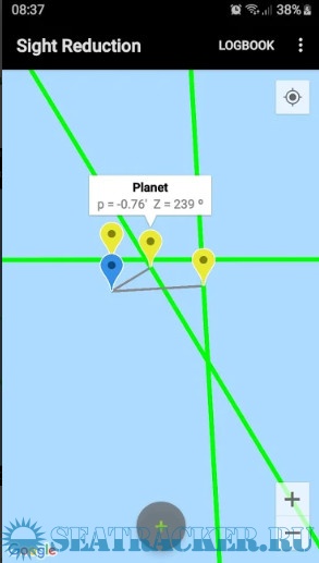 - Plots up to 3 Marcq Saint Hilaire Lines of Position on Google maps
