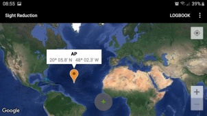 This app is a calculator to get the intercept from the assumed position of the observer AP(latitude, longitude), the geographical position of the celestial body observed, GP(Dec, GHA), and its corrected altitude Ho.