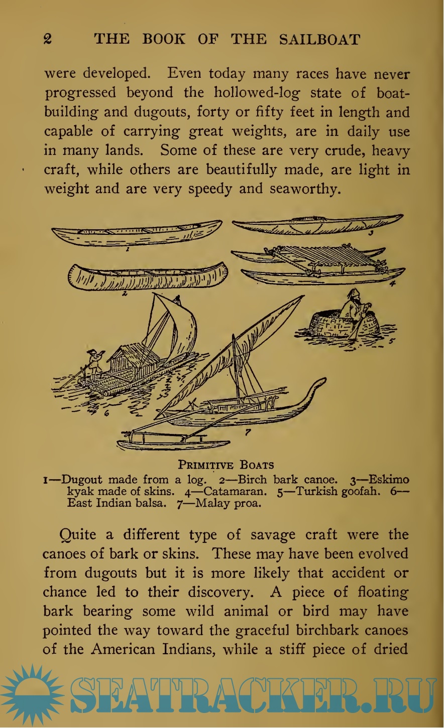 Year: 1916 Language: english Author: A.Hyatt Verrill Genre: Textbook Publisher: D.Appleton and Company Format: PDF Quality: Scanned pages Pages count: 212 Description: No one knows who first invented boats. Probably they were used by primitive man long before he discovered how to use bows and arrows or had even learned to chip stones into simple tools and weapons. But those early boats were not boats as we know them today, for it has taken untold centuries for mankind to improve and develop boats to their present state of perfection. It was a natural and easy matter for a savage to straddle a floating log and, thus supported, cross some pond or stream, and when some member of the tribe discovered that two logs lashed together were more comfortable and less likely to roll over and dump their passengers into the water than a single log, he no doubt felt as if he had made a marvelous invention and was probably looked upon as a prehistoric Fulton by his fellowmen. Later on some man found that a hollowed log was more buoyant and stable than an ordinary tree trunk and from this crude beginning rude dugout canoes were developed. Even today many races have never progressed beyond the hollowed-log state of boatbuilding and dugouts, forty or fifty feet in length and capable of carrying great weights, are in daily use in many lands. Some of these are very crude, heavy craft, while others are beautifully made, are light in weight and are very speedy and seaworthy.