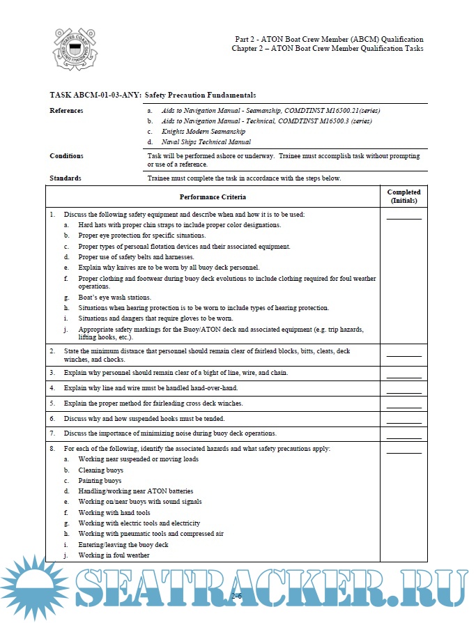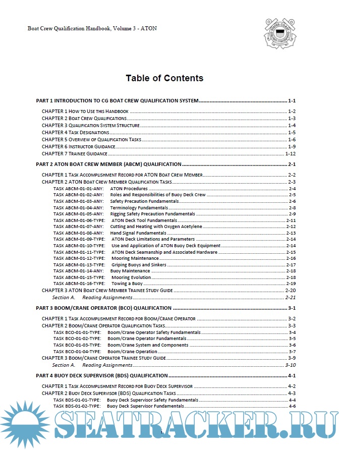 Boat Crew Qualification Handbooks describe policy, standards, instructions, procedures and guidance for the purpose of training, qualifying and certifying personnel to operate on Coast Guard boats. These four volumes are the up-to-date natural complement to the "Boat Crew Handbook", vol 1-5.