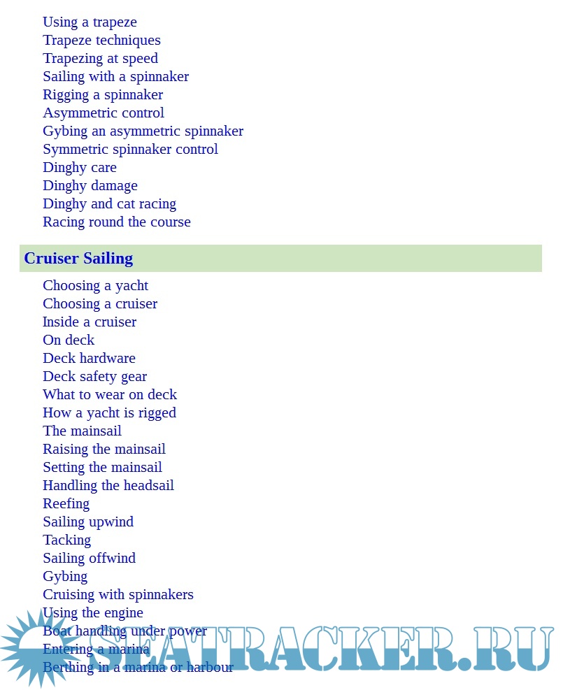 This second edition has been completely revised, including new techniques and new approaches to communication, first aid and navigation, advice on anchoring and berthing. Boat etiquette and seamanship. Boat maintenance and repair. Buyoage, tides, charts and navigation. Knots, ropes and flags. Launching, helming and capsizing. Managing a crew. Mastering the trapeze. Racing techniques and tactics. Reading the weather. Rules of the road. Safety and Emergencies. Sailing with a spinnaker.