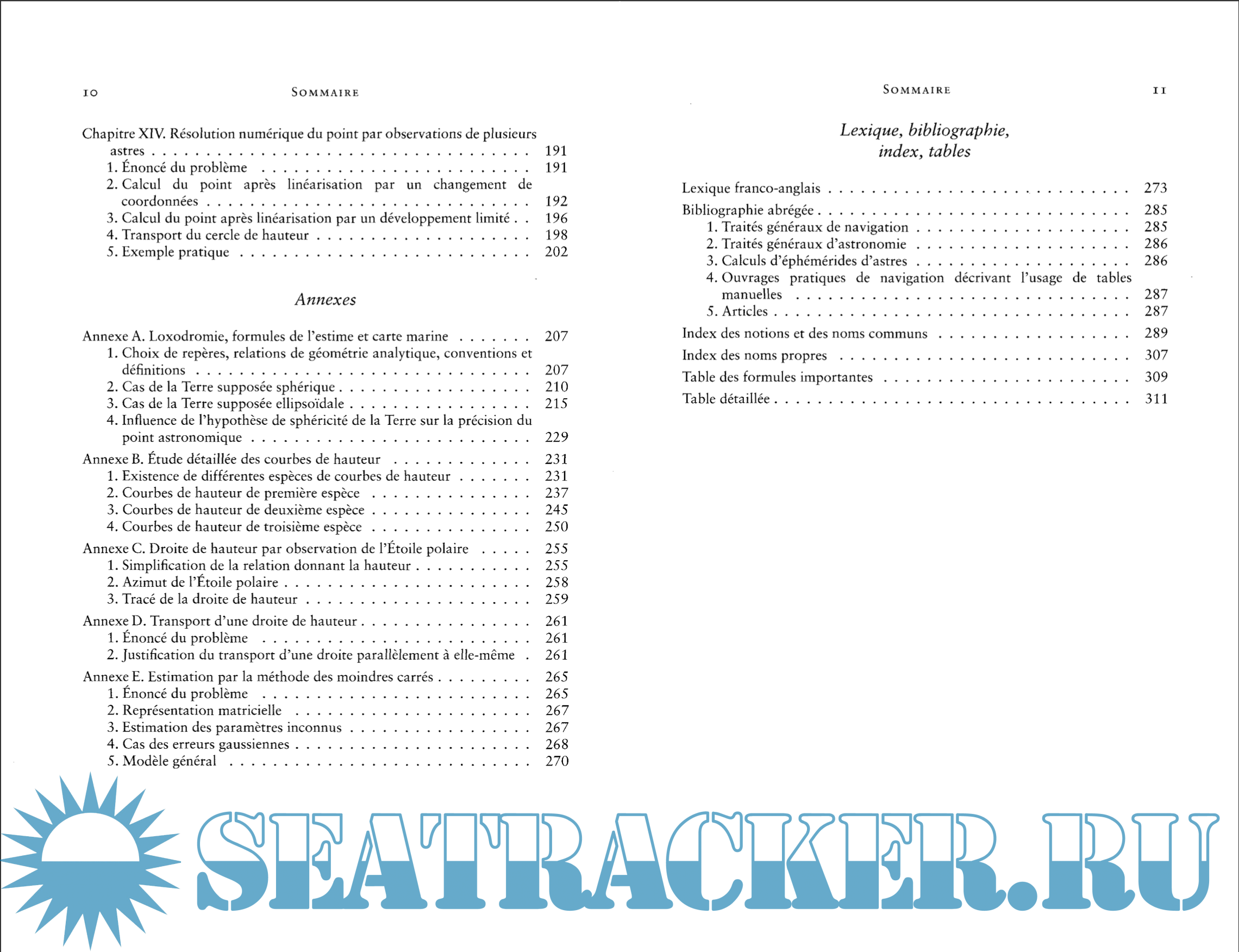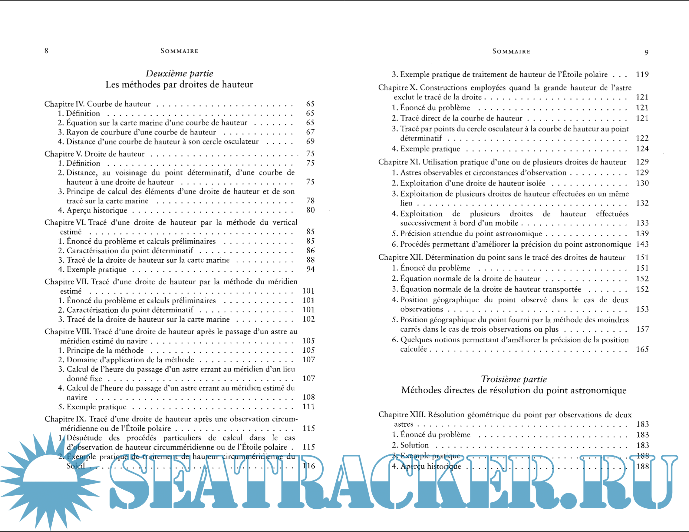 Year: 2000 Language: french Author: Philippe , Bourbon Genre: Manual Publisher: Institut Océanographique Edition: 15/07/2000 ISBN: 978-2-903581-24-4 Format: PDF Quality: OCR without errors Pages count: 318 Description: Destiné aux marins professionnels comme aux plaisanciers et aux amoureux de la voûte céleste, ce traité de navigation astronomique tire parti de l'aide offerte par la micro-informatique en présentant ceux des procédés traditionnels dont l'intérêt demeure et en proposant de nouveaux traitements.Illustré de figures et d'exemples numériques nombreux, l'ouvrage comporte trois (rappels de cosmographie et de navigation à l'estime; méthodes déduites de la théorie de la droite de hauteur; méthodes directes d'obtention du point), une bibliographie et un lexique franco-anglais. Aimed at professional sailors as well as boaters and lovers of the sky, this astronomical navigation treaty takes advantage of the help offered by micro-computing by presenting those of traditional processes whose interest remains and by proposing new treatments. Illustrated with numerous figures and numerical examples, the work comprises three (reminders of cosmography and dead reckoning; methods deduced from the theory of the straight line of height; direct methods of obtaining the point), a bibliography and a French-English lexicon.