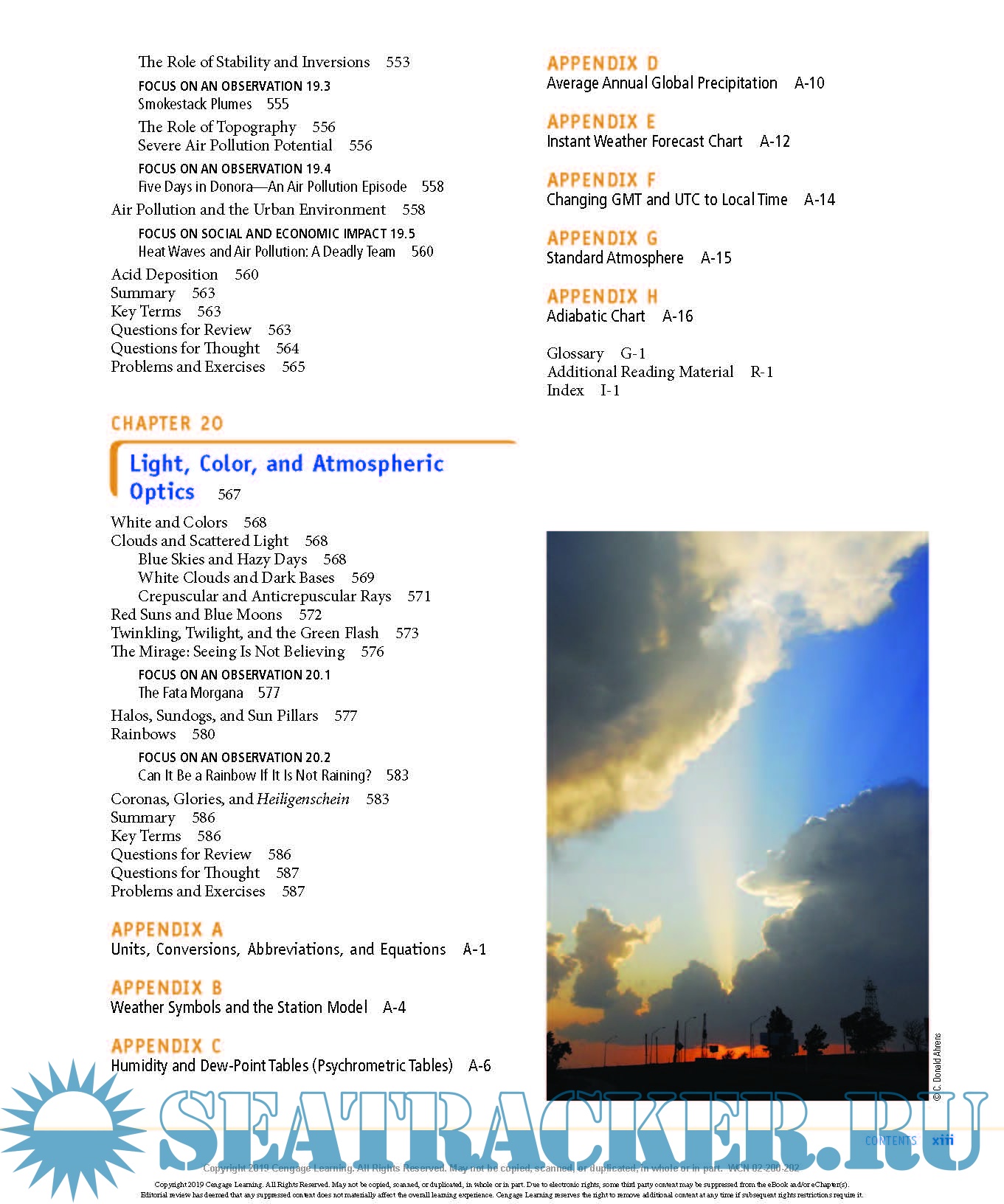 Description: “Meteorology Today: An Introduction to Weather, Climate, and the Environment” by meteorologists C. Donald Ahrens and Robert Henson combines the latest in weather, climate and earth science to introduce students to the concepts and current issues of meteorology. Grounded in the scientific method, the new edition of this highly visual text shows students how to observe, calculate and synthesize information as budding scientists. Specific discussions centre on severe weather systems like tornadoes and hurricanes, as well as everyday elements like wind, precipitation and the seasons. The MindTap course provides students with engaging features such as Concept Animations, a digital Study Guide, and summative EOC assessment. New assignable Case Study activities in each chapter allow students to apply their knowledge to real life studies and meteorological events.