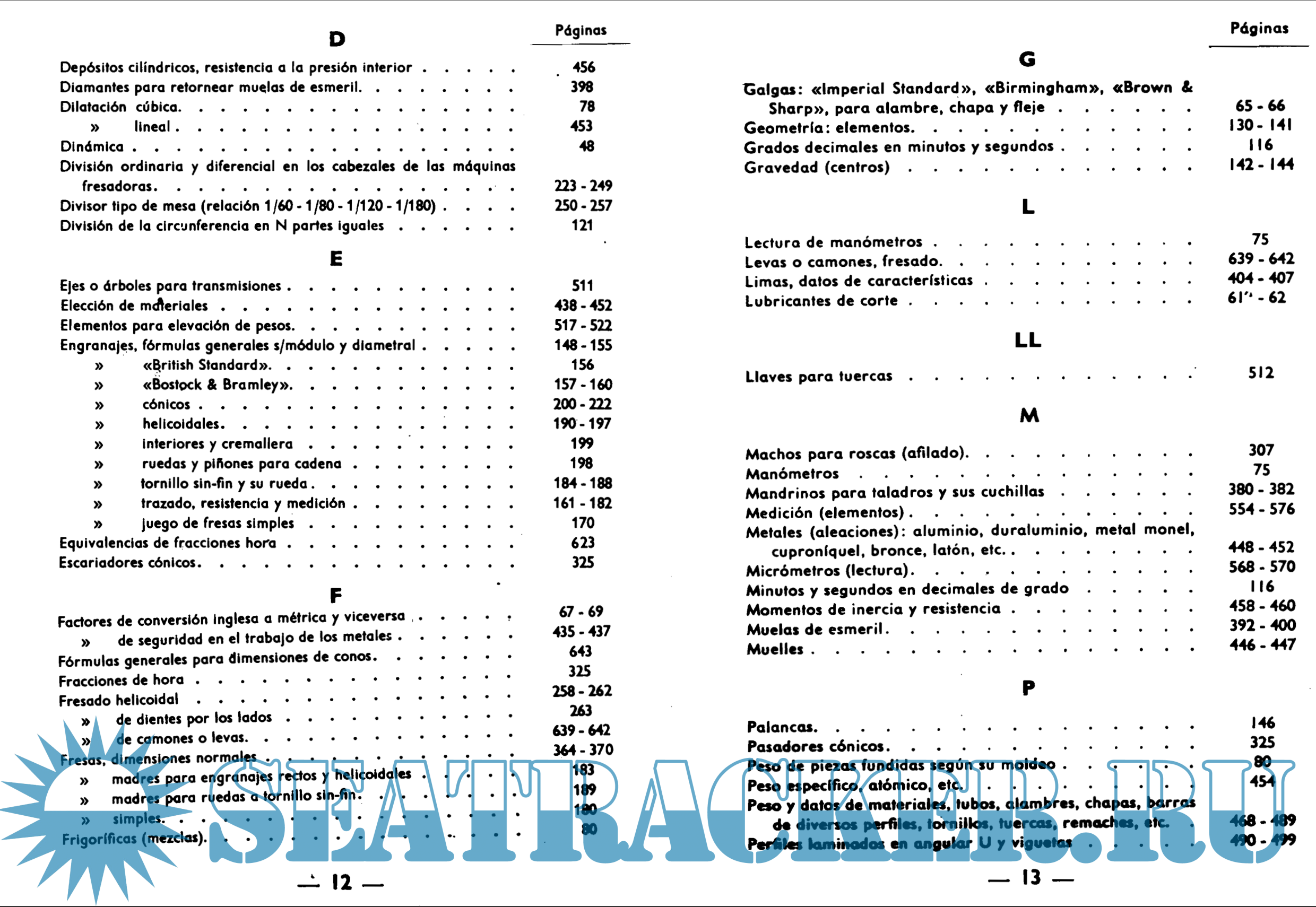 Description: Es un práctico manual de bolsillo que contiene equivalencias del sistema inglés al métrico, tablas trigonométricas, datos y fórmulas para engranes, cálculos para fresado, sistema general de roscas, sistemas de conos, resistencia, pesos y datos de materiales, transmisiones, etc...
