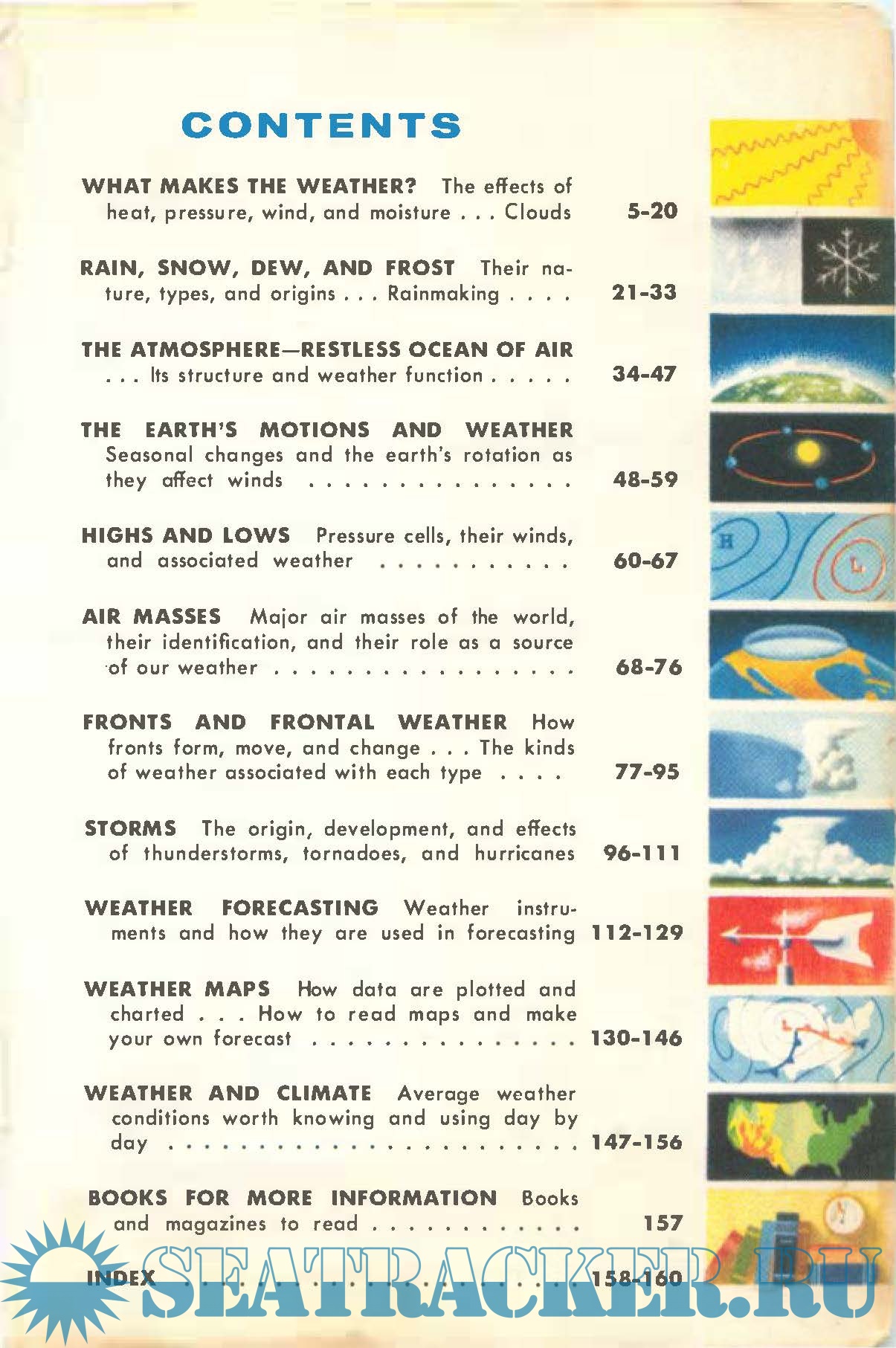 Year: 1957 Language: english Author: Paul E. Lehr, et al. Genre: Handbook Publisher: Golden Press Format: PDF Quality: Scanned pages Pages count: 164 Description: This is an antique, fully illustrated entry-field guide to all the parameters of weather. From gauging high and low pressure systems, to learning the importance of relative humidity, this book has a lot to offer. Did you know you don't need a thermometer to tell the air temperature when rime or other ice crystals are present on your windshield? This book will tell you how! Is the barometer dropping at the same time as these clouds form? This book will tell you if tonight will be a great or poor choice to haul out your 200-pound dob! The illustrations are so prolific and so well done, you can almost learn by visuals alone. Cameras did not make for very sharp photos back then, so artists instead took over for visual examples and they did it in a most unique and inviting way with real colours and perfect-drawn/painted weather scenes.