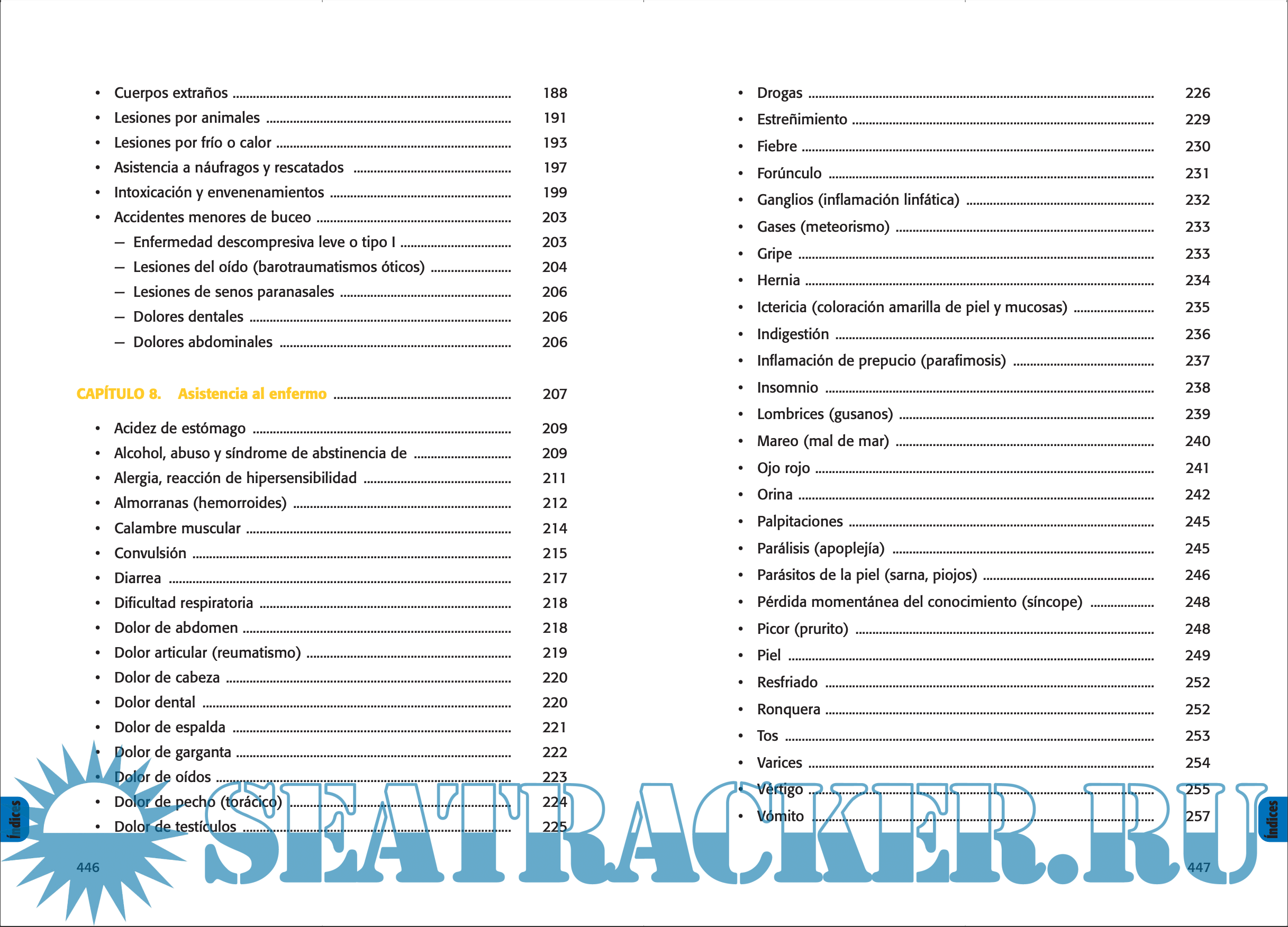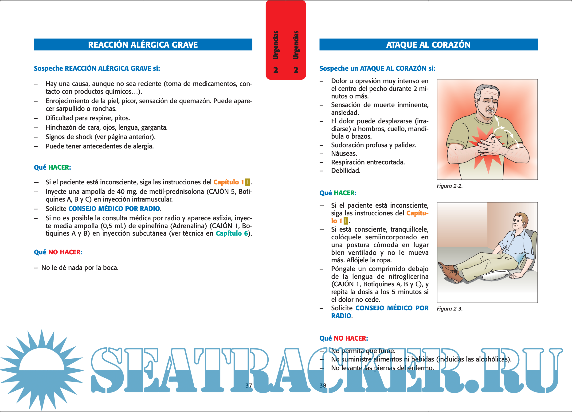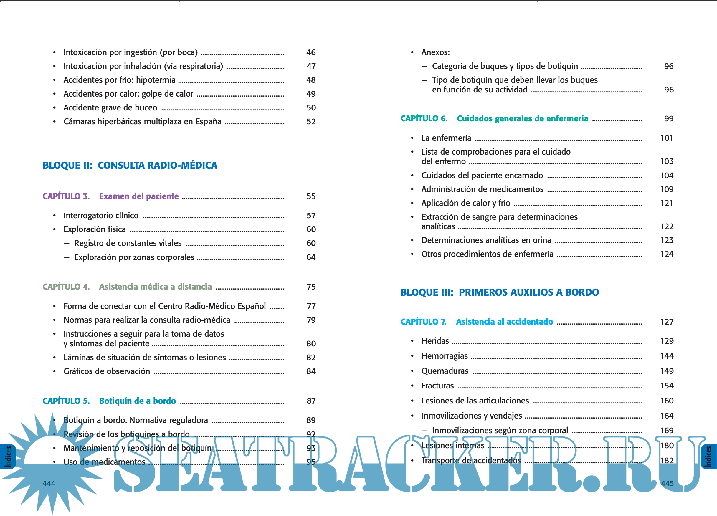 Edited by numerous Maritime Health professionals of ISM (Spanish Marine Social Institute) as an instrument in medical consultations remotely conducted, allows the use of the medicine chest in an urgency or when it is not possible to communicate with the Radio-Medical Center. It serves as a reminder of the preventive measures to be taken on ships to maintain health and to know when necessary what to do with a death on board.