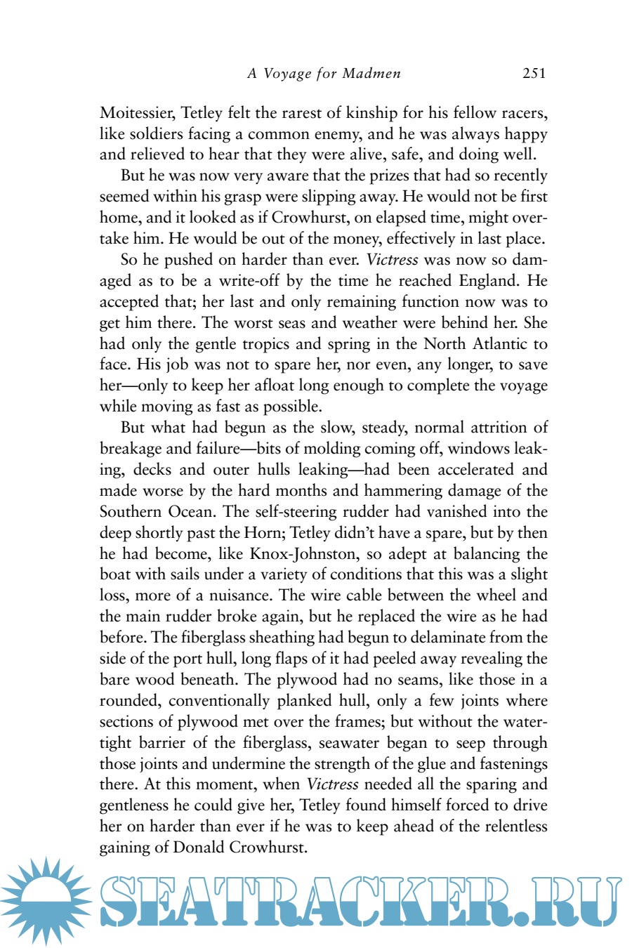 In this extraordinary book, Peter Nichols chronicles a contest of the individual against the sea, waged at a time before cell phones, satellite dishes, and electronic positioning systems. A Voyage for Madmen is a tale of sailors driven by their own dreams and demons, of horrific storms in the Southern Ocean, and of those riveting moments when a split-second decision means the difference between life and death.