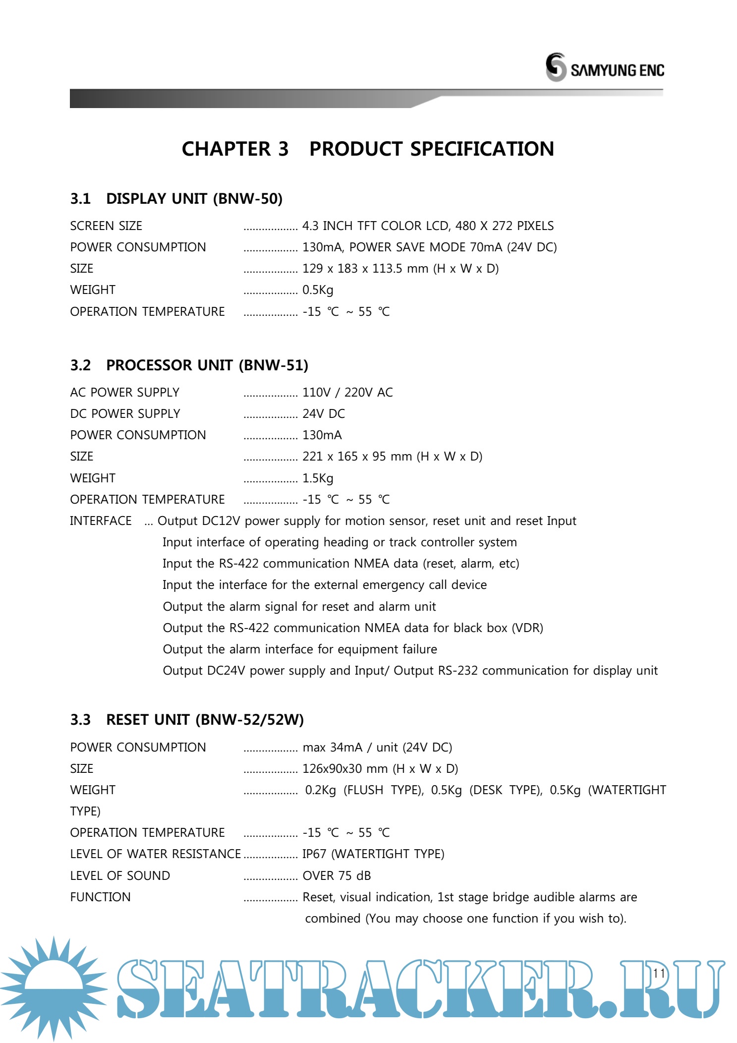Samyung BNW-50 Bridge Navigational Watch Alarm System User Manual