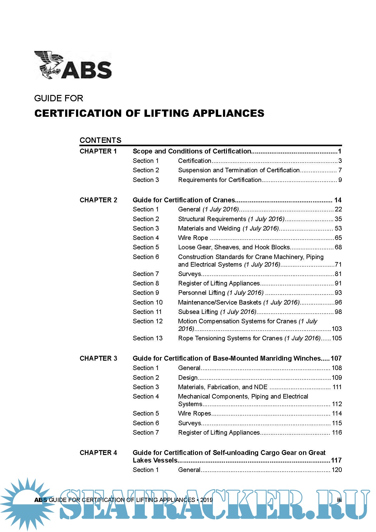 Description: The 2018 edition of the Guide for Certification of Lifting Appliances is an updated version of the 2016