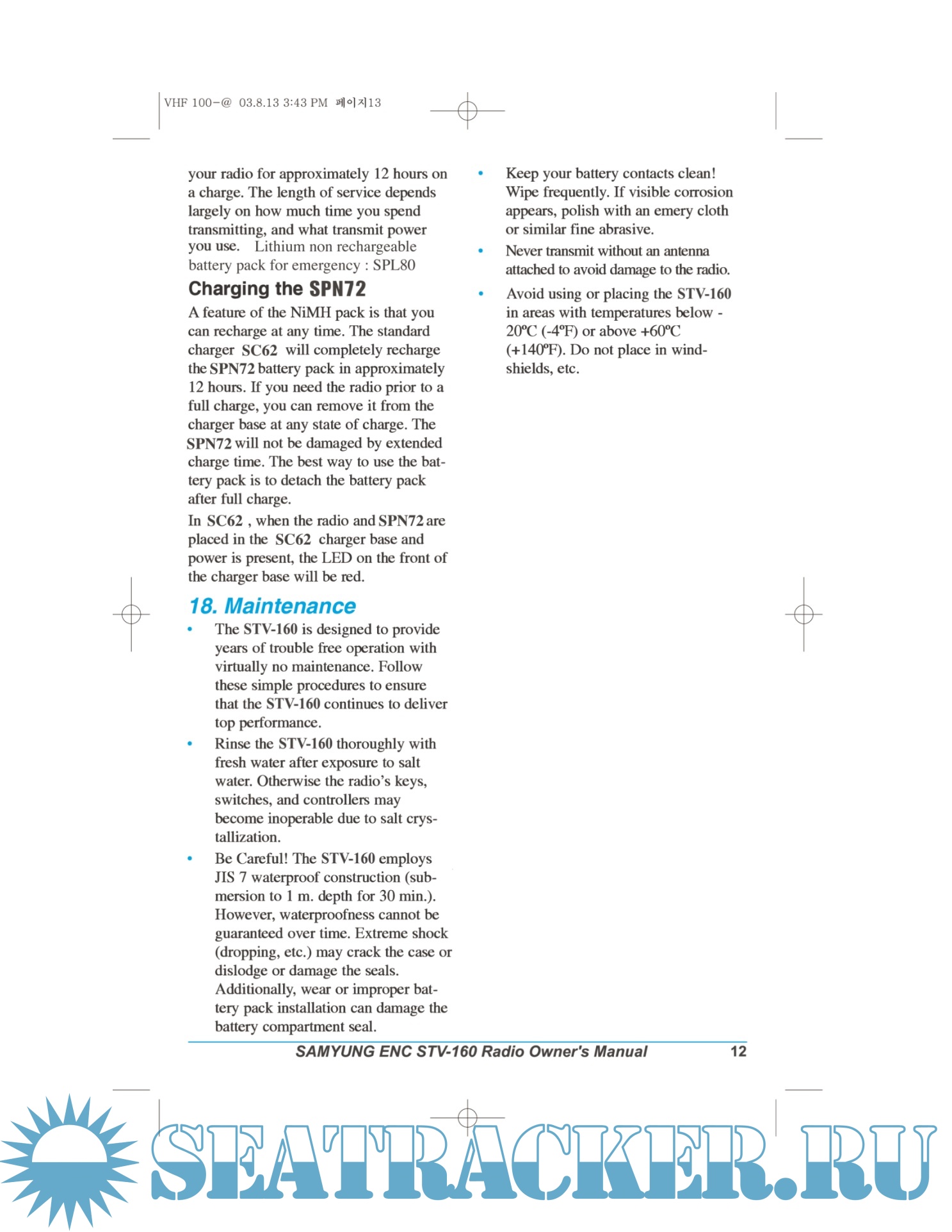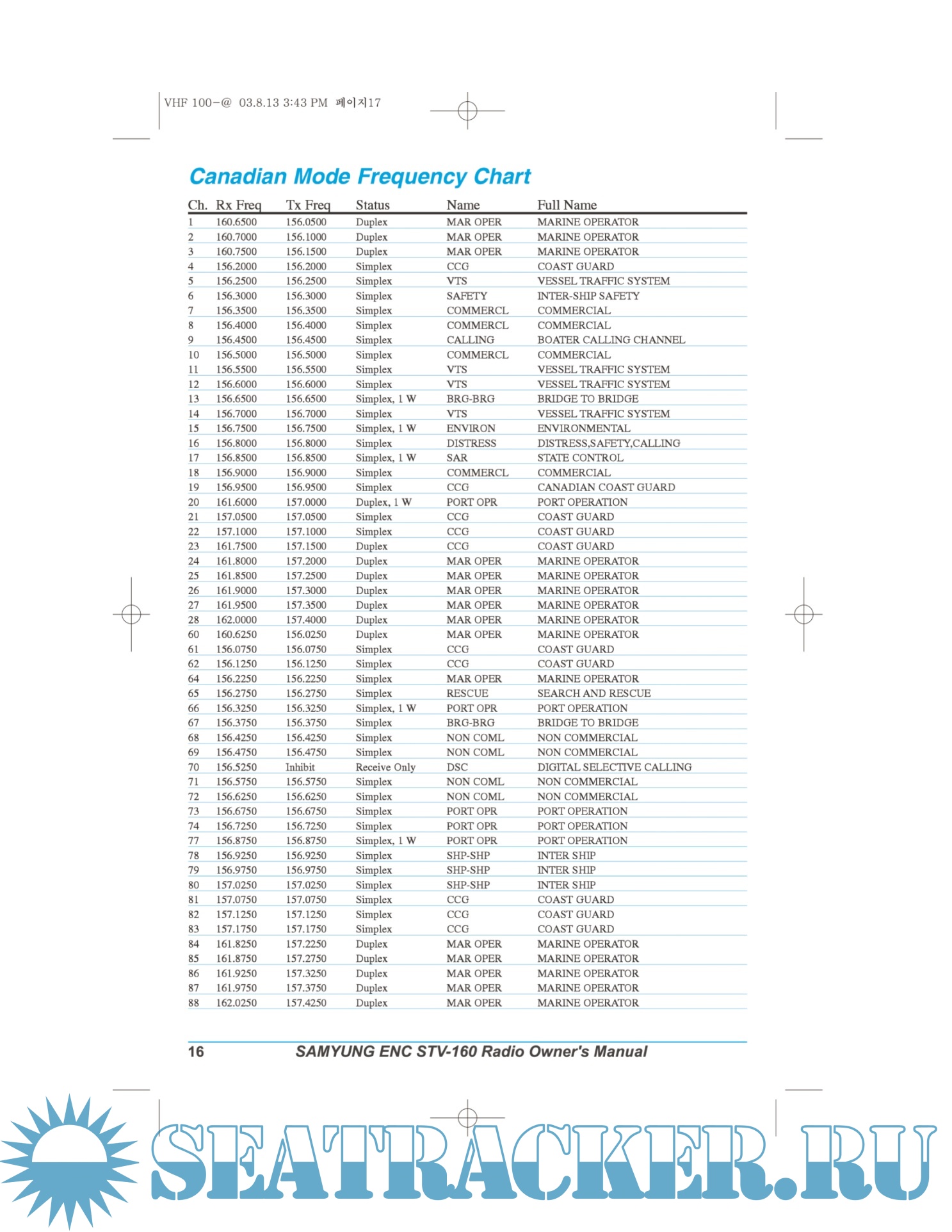 Samyung STV-160 VHF radio telephone User Manual