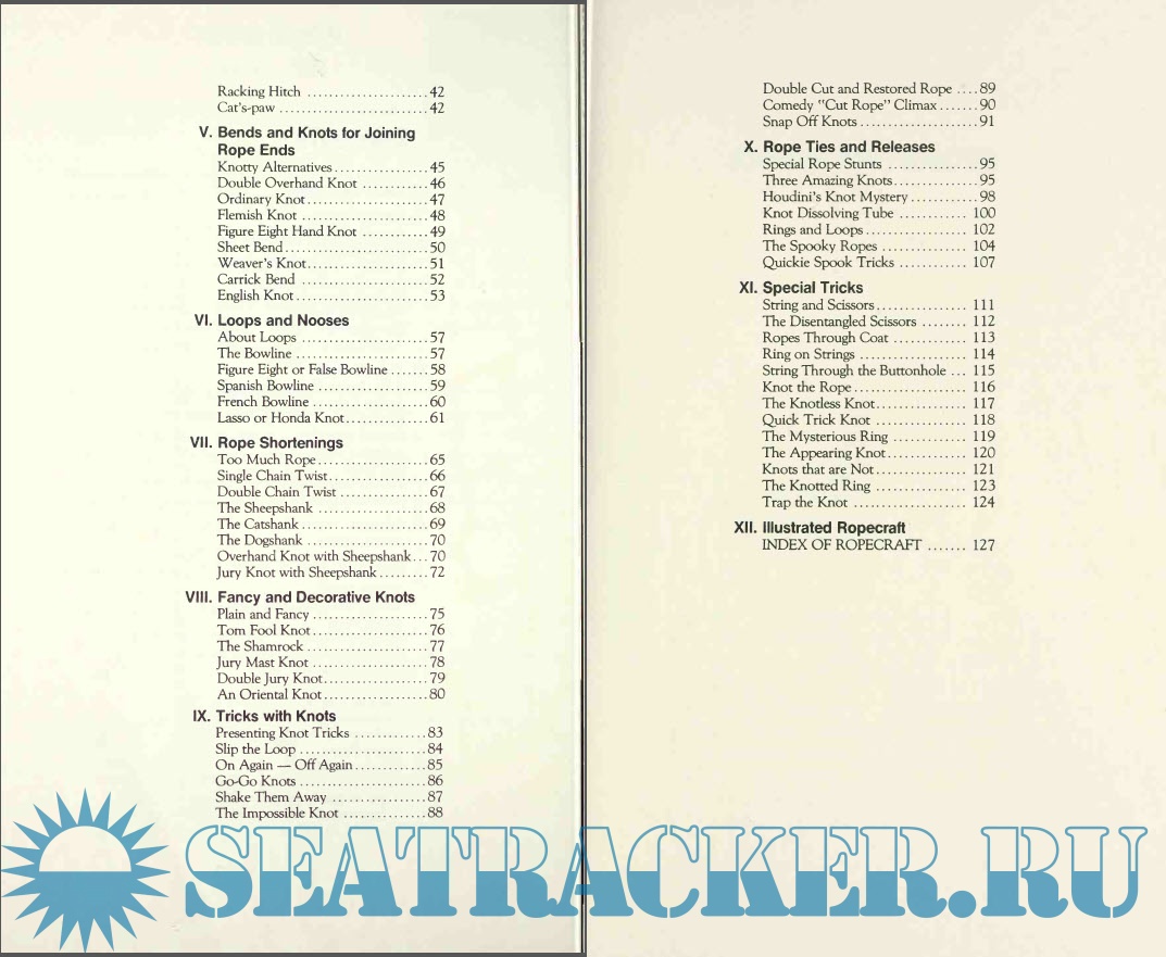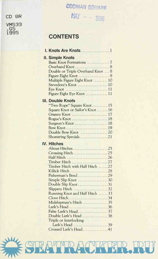 Year: 1995 Language: english Author: Walter B. Gibson Genre: Guide Publisher: Lifetime Books,Inc Edition: Fourth Edition ISBN: 0-8 11 9-0829-1 Format: PDF Quality: Scanned pages Pages count: 146 Description: Few things are easier than making a knot in a piece of string or rope. Although, how good or efficient that knot may be is another story. Some people just can't seem to tie knots that will stay, while others have an aptitude for tying knots that just won't come untied, no matter how hard they work at it. Someone once quipped, "Almost everybody knows how to tie a knot, but practically nobody knows how to tie one right." That is very nearly true. At least 99 percent of the population knows how to tie a knot of some sort; and of those, at least 99 percent do it blindly or by rote, unless they have had some instruction or have made a study of rope work. "Of course I know how to tie knots!" a person might insist. "It's one of the first things I was taught." And probably, that lesson was the last, given by an instructor who had been similarly taught — the wrong way. If a survey were taken, it would probably prove that the greatest hazard to human safety, aside from driving in holiday traffic or rocking a boat filled with people who cannot swim, is not knowing how to tie a knot properly. All ties or fastenings that use rope or cordage fall into three general classifications: knots, hitches, and bends. All are "knots" in the full sense of the term, and there are some ties which have more than one classification, their purposes being interchangeable.