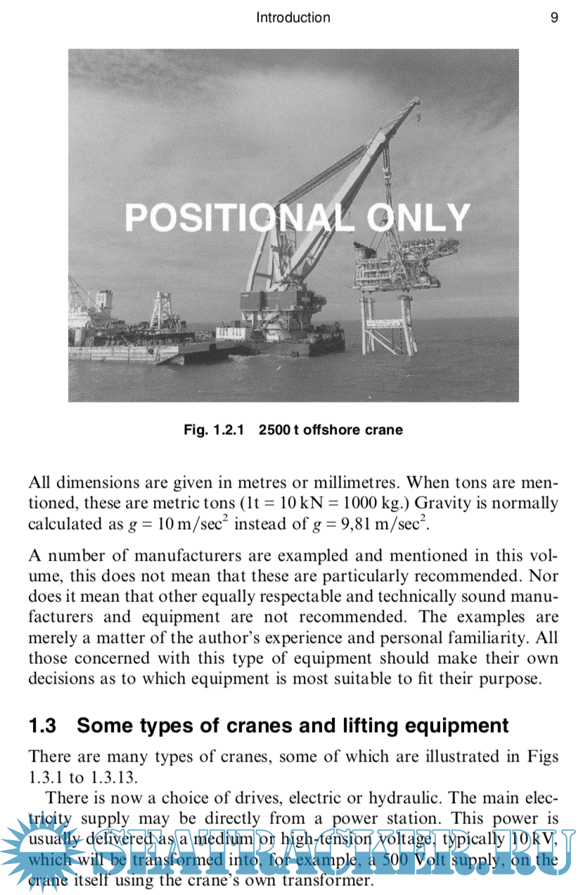 Year: 2002 Language: english Author: Ing. J. Verschoof Publisher: Professional Engineering Publishing Limited Edition: 2 ISBN: 1 86058 373 3 Format: PDF Quality: eBook Pages count: 349 Description: It is the intention of this book to give all those who have anything to do with hoisting cranes and hoisting equipment a clear source of information on the most important and interesting aspects of this vital and complex equipment. Who will find this information useful? This book is designed to help all those involved in the use, maintenance, purchase, specification, design, and construction of cranes. These com- plicated and expensive devices deserve specialist attention and require a detailed understanding of their workings. Directors, consultants, tech- nicians, engineers, project managers, maintenance contractors, and those involved in the design of cranes will find useful material here. The author aims to provide understanding of the construction, components, and calculations required for the safe and efficient operation and designs of cranes. The analyses, formulae and calculations included here provide the first principles, theory, and numerous examples, so that the reader, hav- ing understood the basic principles and the methods of calculation, can go on to calculate or recalculate certain problems. It is hoped that the years of experience in the crane industry, which have led to this publi- cation, will assist those grappling with practical problems today. Numerous photographs and diagrams are included, showing various pieces and types of equipment in action. Above all, this volume is for the practising engineer whether working with this equipment every day, or occasionally coming into contact with cranes.