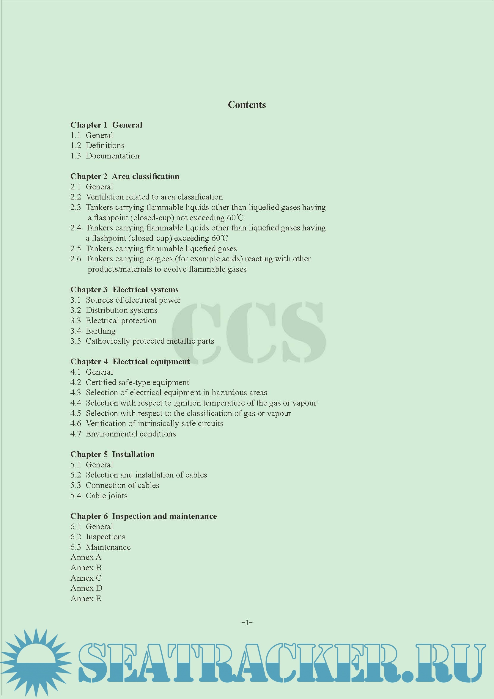 Year: 2010 Language: english Author: CCS Genre: Guide Publisher: CCS Edition: 2010 Format: PDF Quality: eBook Pages count: 38 Description: 1.1.1 The Guidelines applies to tankers carrying flammable liquid cargoes in bulk. 1.1.2 The Guidelines is used by the designers, ship builders and surveyors of tankers for reference, and it does not change the relevant requirements of CCS rules and IEC publications in force. 1.1.3 The term “flammable” referred to in the Guidelines includes: (1) hazard results determined by the flashpoint, boiling point, flammability and spontaneous ignition temperature of the cargo carried; (2) hazard results from the reaction of the cargo with other materials.