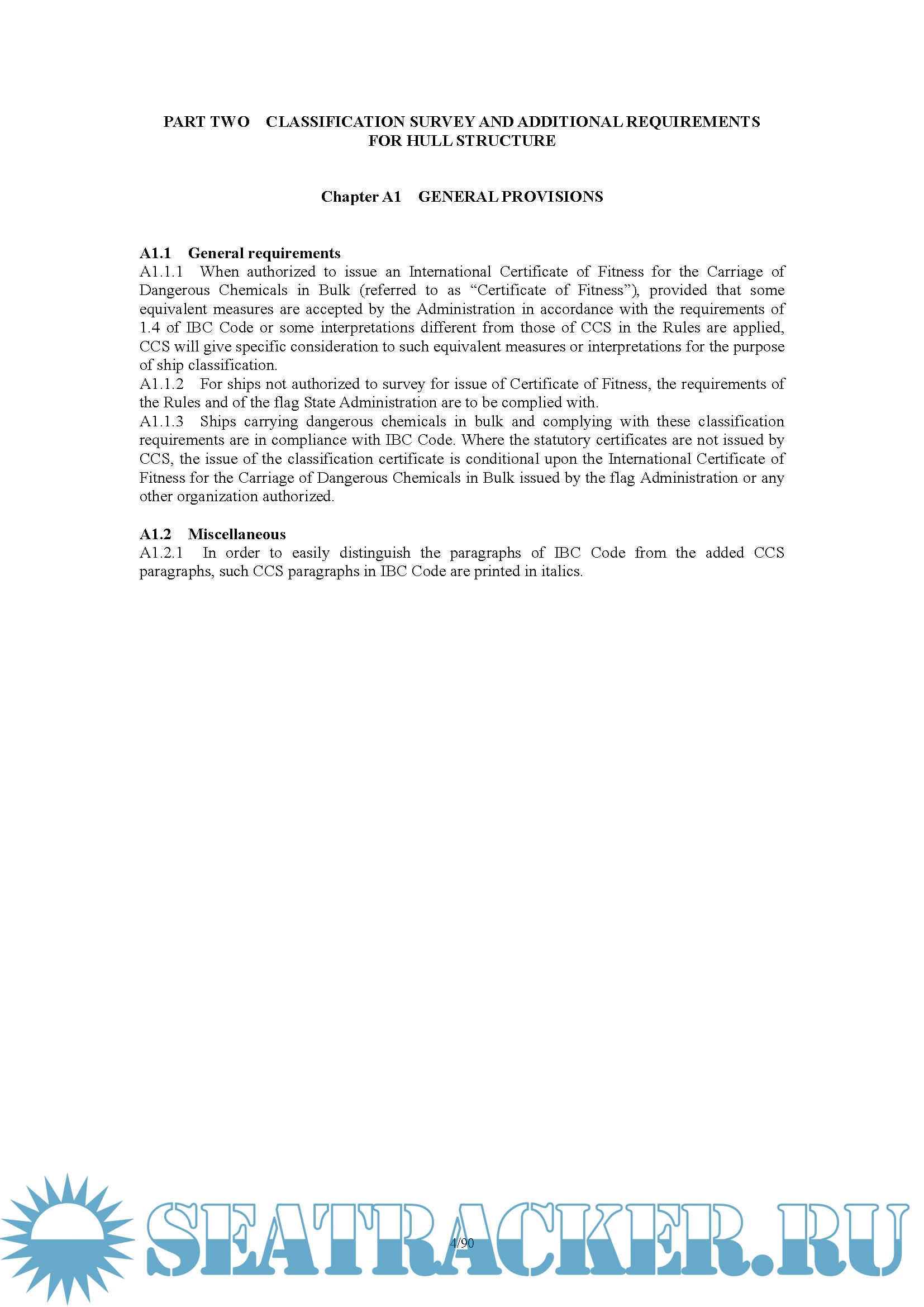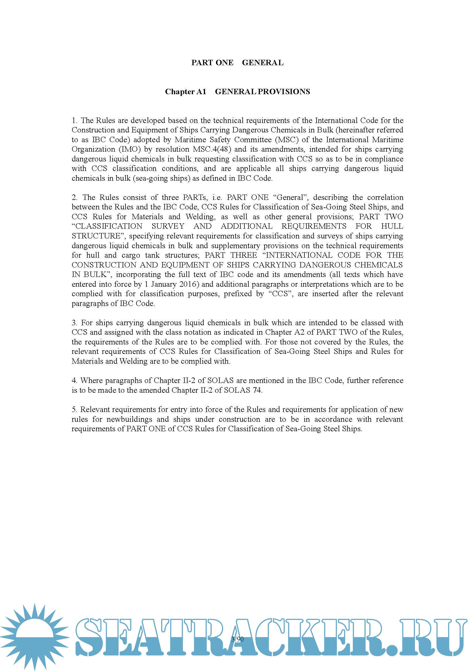 Description: The Rules are developed based on the technical requirements of the International Code for the Construction and Equipment of Ships Carrying Dangerous Chemicals in Bulk (hereinafter referred to as IBC Code) adopted by Maritime Safety Committee (MSC) of the International Maritime Organization (IMO) by resolution MSC.4(48) and its amendments, intended for ships carrying dangerous liquid chemicals in bulk requesting classification with CCS so as to be in compliance with CCS classification conditions, and are applicable all ships carrying dangerous liquid chemicals in bulk (sea-going ships) as defined in IBC Code.