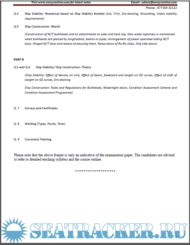 Question Paper (updated March 2023) for M.E.O. Class IV Examinations, India - D.G. Shipping, India…