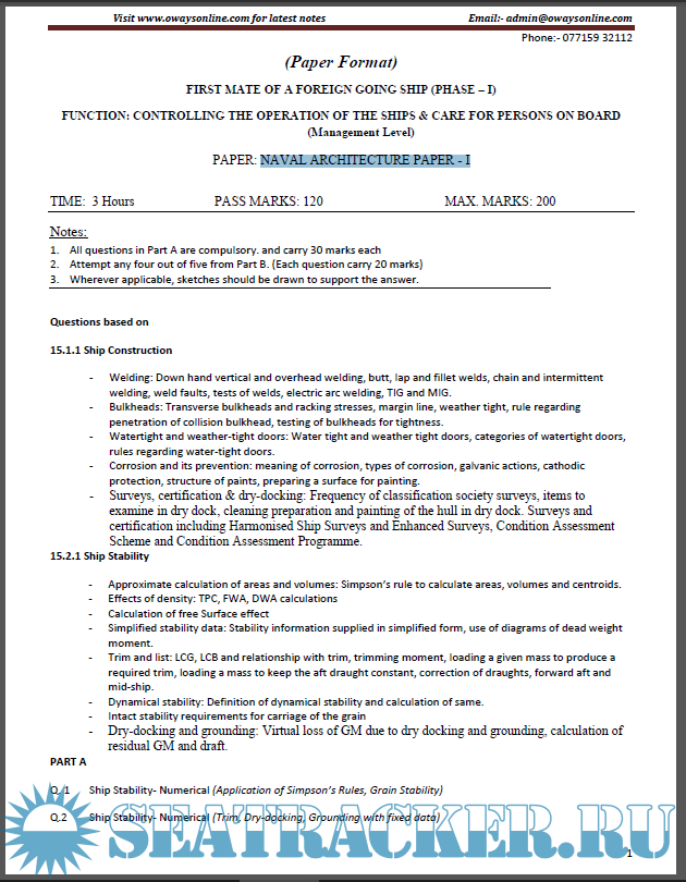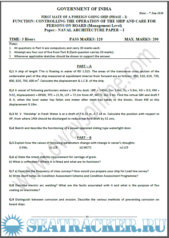 Description: Function - Controlling the operation of ship and care of persons onboard. Paper - Naval Architecture-1
