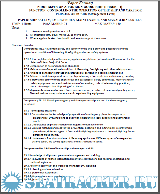 Description: Function - Controlling the operation of ship and care of persons onboard. Paper - Ship Safety, Emergencies, Maintenance and Managerial Skills