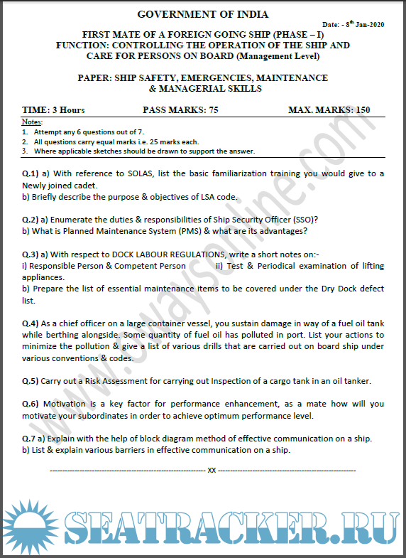 Question Paper Set for Phase I (Chief Mate F.G.) Mercantile Marine Department (MMD), India…