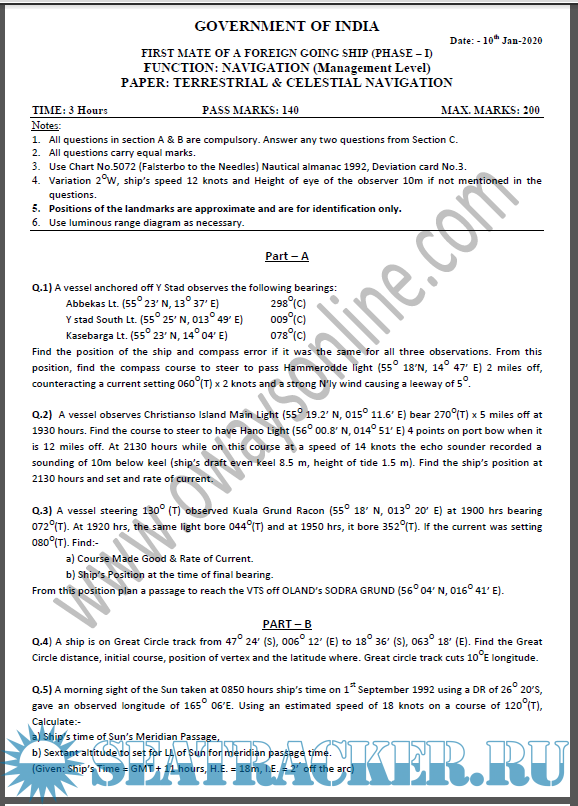 Navigation: Doubts During Solving from Past Question Papers of Mercantile Marine Department (MMD),…