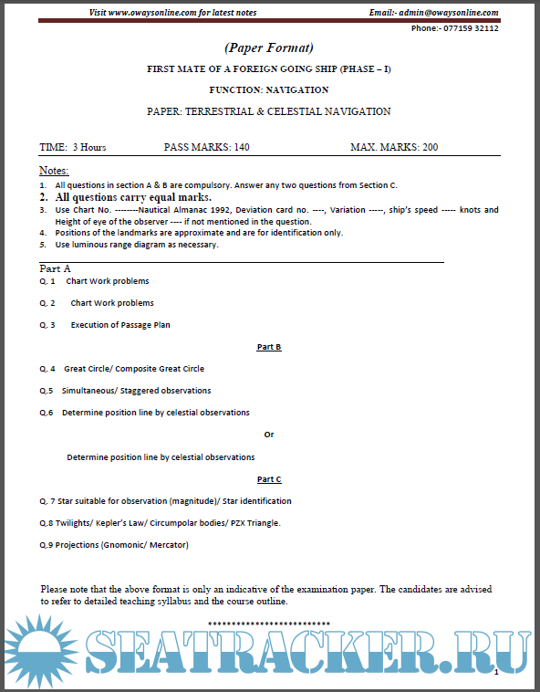 Question Paper Set for Terrestrial and Celestial Navigation (July 2022) for Phase I (Chief Mate…