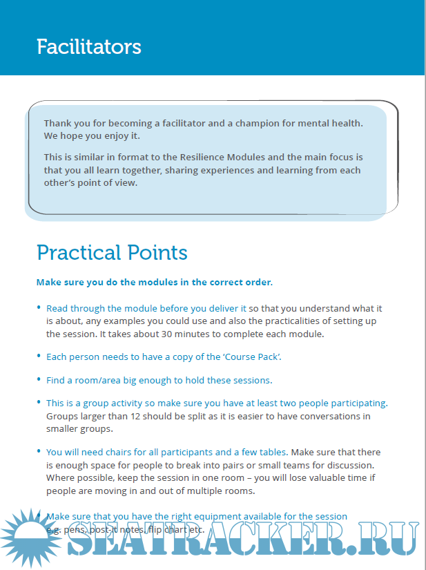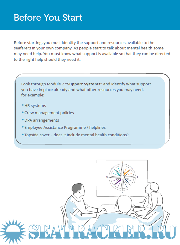 Year: 2017 Language: english Author: Group of authors Genre: Учебное пособие Format: PDF Quality: eBook Number of pages: 68 Description: Mental health is increasingly recognised within the shipping industry as an important issue. There is a growing awareness that our seafarers suffer a higher level of mental ill health and suicide compared to land-based workers. However, we may find mental health issues difficult to talk about. This course consists of four modules, which are delivered in a group setting and lead by a facilitator. This course is aimed at allowing seafarers and companies to start having the conversations around mental health and to start building understanding. This pack is specially designed for courcefacilitators