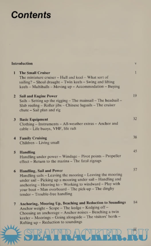 The author assumed that the reader has sailed a dinghy and knows the rudiments of chartwork and boat handling. Practical common sense is the root of sailing and seamanship and I believe that provided a total beginner is practical, sensible and interested, he could be stuck aboard a boat and left to fathom it out for himself. I wouldn’t advise it, but he’d get there, albeit via a few costly bumps - learning by trial and error. But then, sensible people rarely get into bad trouble; it is the impractical big- heads with a superficial smattering of knowledge - theory rather than practice - who fill the lifeboats.