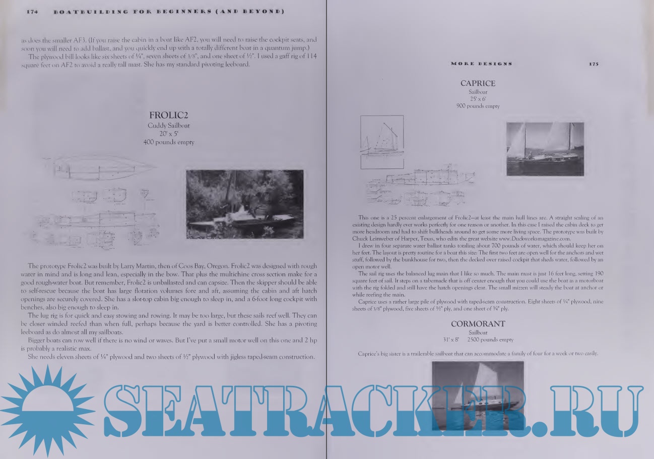 Year: 2002 Language: english Author: Jim Michalak Genre: Handbook Publisher: Breakaway Books Edition: First ISBN: 1891369296 Format: PDF Quality: Scanned pages Pages count: 240 Description: This book takes the complete novice--armed only with a gleam in the eye, and a basic knowledge of hammer, saw, and screwdriver--and walks him or her through the process of building a boat. The only materials needed are easily available from any lumberyard: plywood, 2x4s, nails, and wood glue. The process is simple, the result is extraordinary--your own boat, ready to sail, in just a week or two, for a fraction of the cost of buying a factory-built (boring!) boat. And the sense of accomplishment is beyond compare. The main focus of the book is on building the 14-foot sailing/rowing skiff called "Mayfly." Full plans and detailed step-by step instructions are given, with numerous line drawings and photographs. Those instructions can then be applied to the other full plans included: for a dinghy, a motorboat, a rowboat, a canoe, and two other sailboats. The only other book to compare is Harold Payson’s venerable Build the New Instant Boats. But where that book leaves off, this book goes beyond: with chapters on making your own oars, making kick-up rudders, pivoting leeboards, sails, flotation compartments, water ballast, hatches, and tips for cartopping and trailering your boat, and much more. It is an introductory book that will continue to be pored over as the beginner transforms himself or herself into an experienced boatbuilder. Also included are a catalog of twenty other boat plans for dreaming over, a guide to boatbuilding sites on the web, a guide to materials suppliers, and a bibliography of further reading. A great book for families, for scout groups, for school shop classes, for anyone who enjoys messing about in boats. Jim Michalak is a former aerospace engineer who has become, in the last decade, one of the foremost designers of small boats in America. He lives in Lebanon, Illinois. Additional info: From the Publisher This book is an extraordinary value -- full building plans for six different boat, and clear, methodical instruction to help anyone build their first boat. Over a hundred photos and drawings to illustrate the process. Full building plans included for: Mayfly: 14' sailboat Piragua: 13' pirogue, or simple canoe QT Skiff (rowing version): 13' rowboat QT Skiff (motor version): 13' motorboat Jonsboat: 16' jonboat Robote: 14' taped-seam rowboat