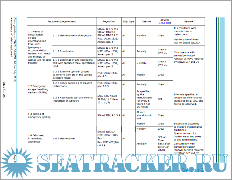 Description: The requirements for inspection and maintenance of vessels' safety equipment can be found in a large