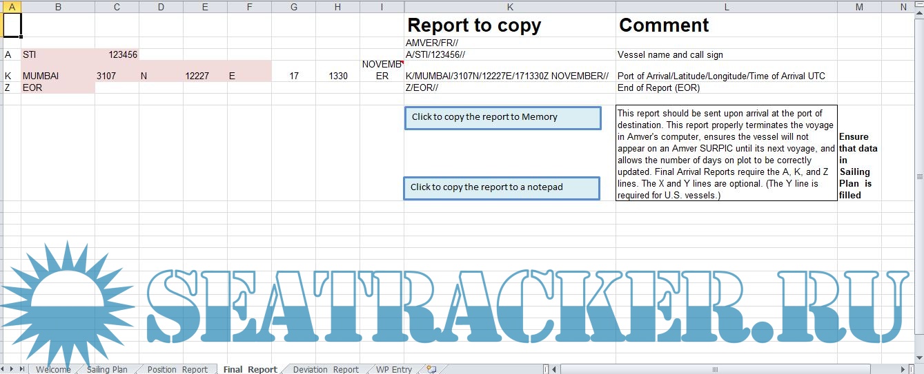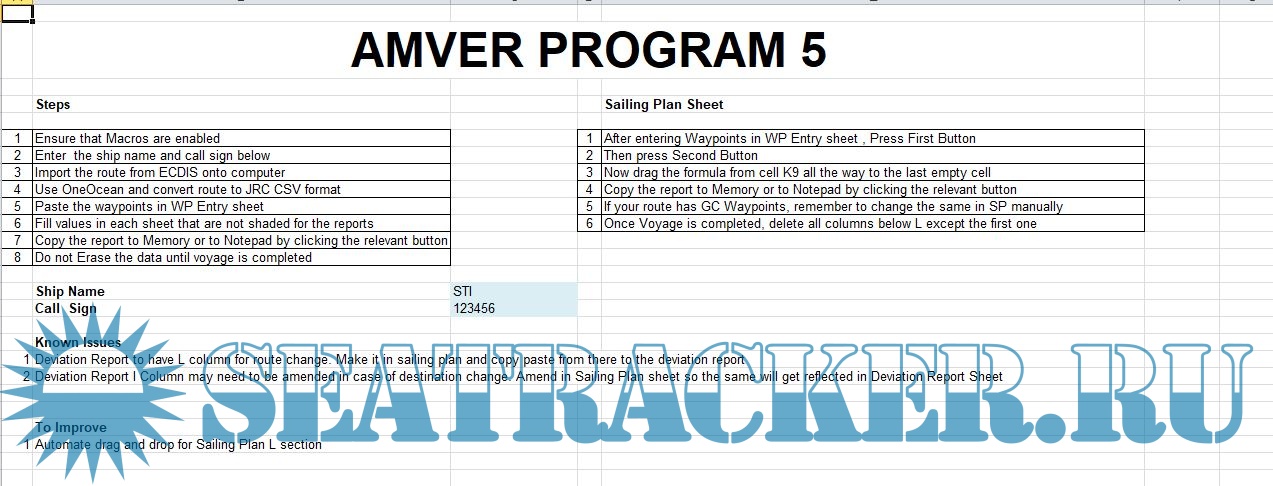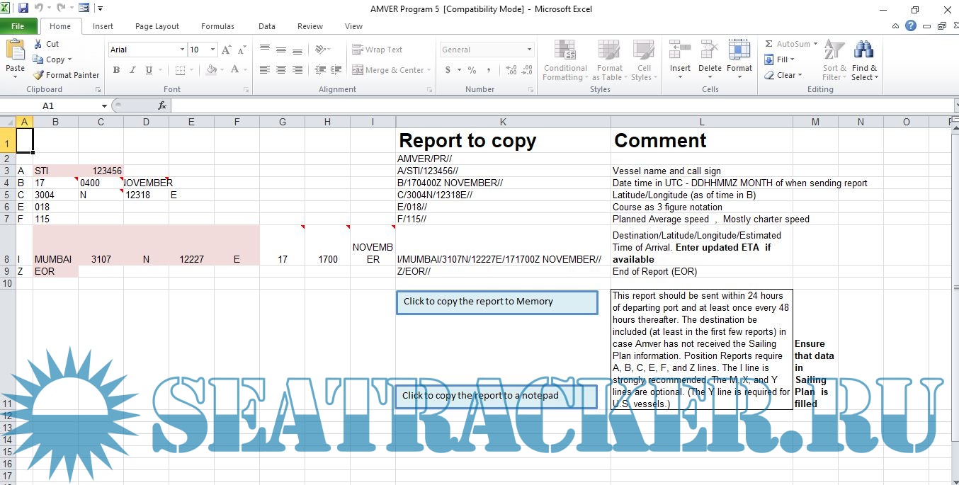 Description: This is a program I made to make AMVER reporting easier. Just export the route from ECDIS into csv fromat , paste it in excel , add a few necessary details and press the button. Thats all you have to do. This is second version of a program I made earlier. I have changed few things on it. I hope now the procedure becomes much easier.