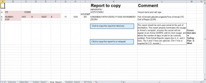 Year: 2020 Language: english Author: Tom Alex Genre: Guide Format: XLS Quality: Unknown Pages count: 5 Description: This is a program I made to make AMVER reporting easier. Just export the route from ECDIS into csv fromat , paste it in excel , add a few necessary details and press the button. Thats all you have to do. This is second version of a program I made earlier. I have changed few things on it. I hope now the procedure becomes much easier. If you have any feedback , please do tell me