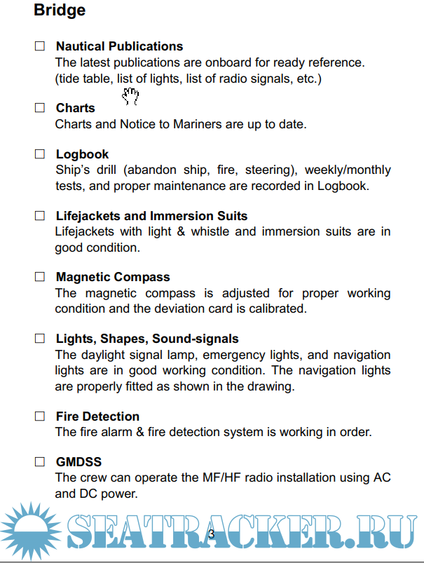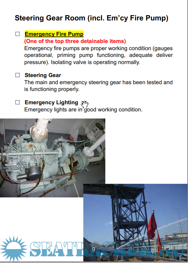 Description: The items identified in this checklist are concerning with the deficiencies which resulted in ship detention.
