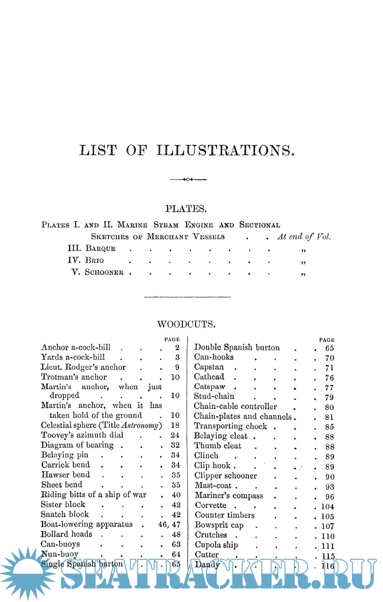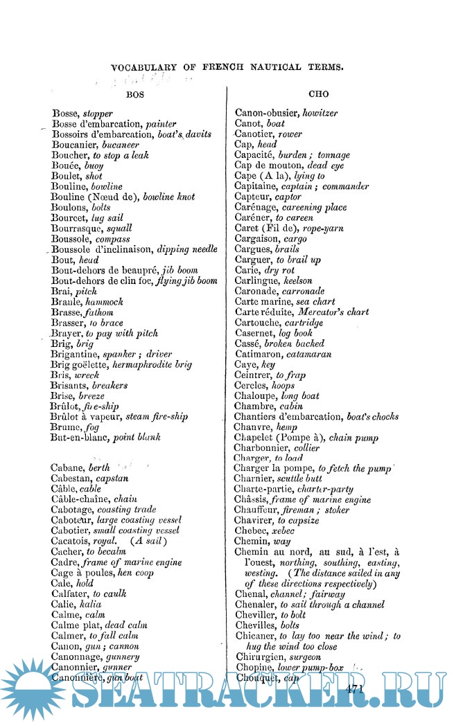 Each of the engraved plates has an index prefixed to it. The introduction of French words in the Dictionary, and of a French vocabulary, by way of supplement, is intended to give an accurate groundwork for the study of the French nautical language. The regulations for preventing collisions at sea, issued simultaneously by the authorities in England and France, are, by the permission of the Board of Trade, added as an Appendix.