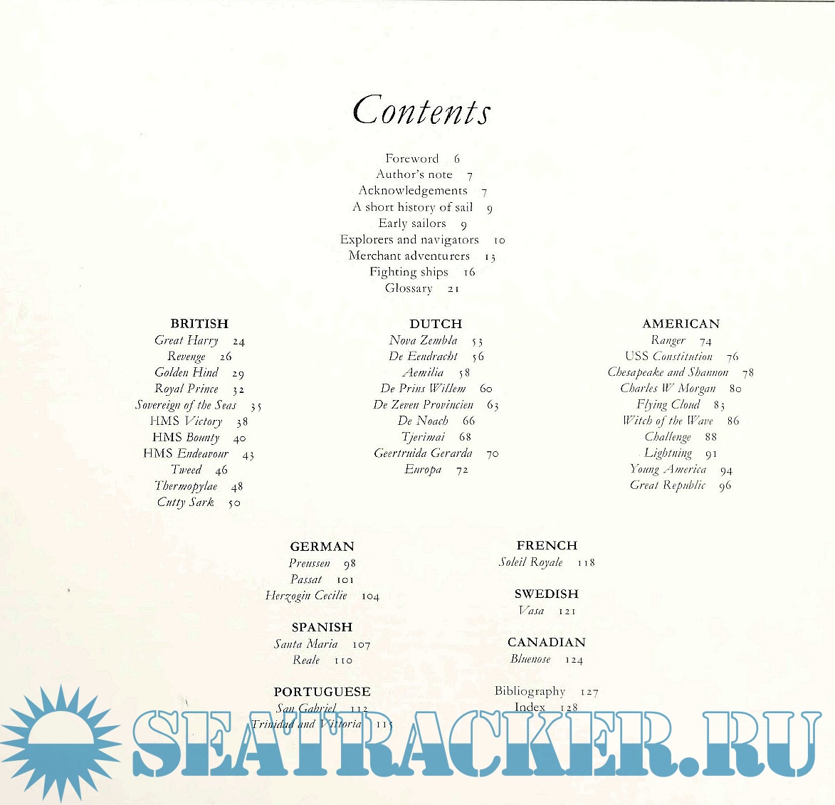 The book is on the world's most famous sailing ships, with original paintings by the Dutch artist Cornelis de Vries, whose ship portraits are well detailed. He has a vast knowledge of sailing ships and, wherever possible, works from archive collections of original shipbuilders' designs and sail plans. As a result, these specially commissioned paintings provide an accurate representation of the original ships.