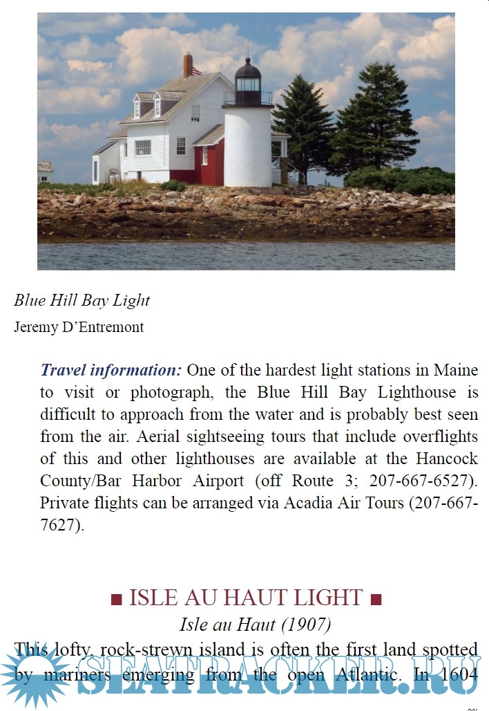 Year: 2020 Language: english Author: Bruce Roberts, Cheryl Shelton Roberts Genre: History Publisher: Globe Pequot Edition: 4th ISBN: 978-1-4930-4701-7 Format: EPUB Quality: eBook Pages count: n/a Description: For more than two centuries, in United States, lighthouses have helped sailors find their way through treacherous waters, guiding them home or taking them safely through passages on their way to adventure. These historic towers and houses form a sparkling chain of lights along our coasts, a reminder of the past echoing with adventure and mystery, a lure for travelers looking for a glimpse into a romantic past. American Lighthouses offers more than just a tour of over 450 beautiful and historic navigational beacons dotting the coasts and lakes of the United States. This fully illustrated handbook details their history and architecture and provides full information on visiting or viewing them. Topics are organized and divided by coast and state.