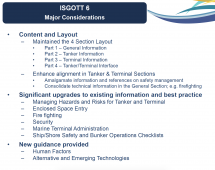 • OCIMF/industry best practice guidance documents; e.g. MTMSA, SIRE new equipment and changes in technology
