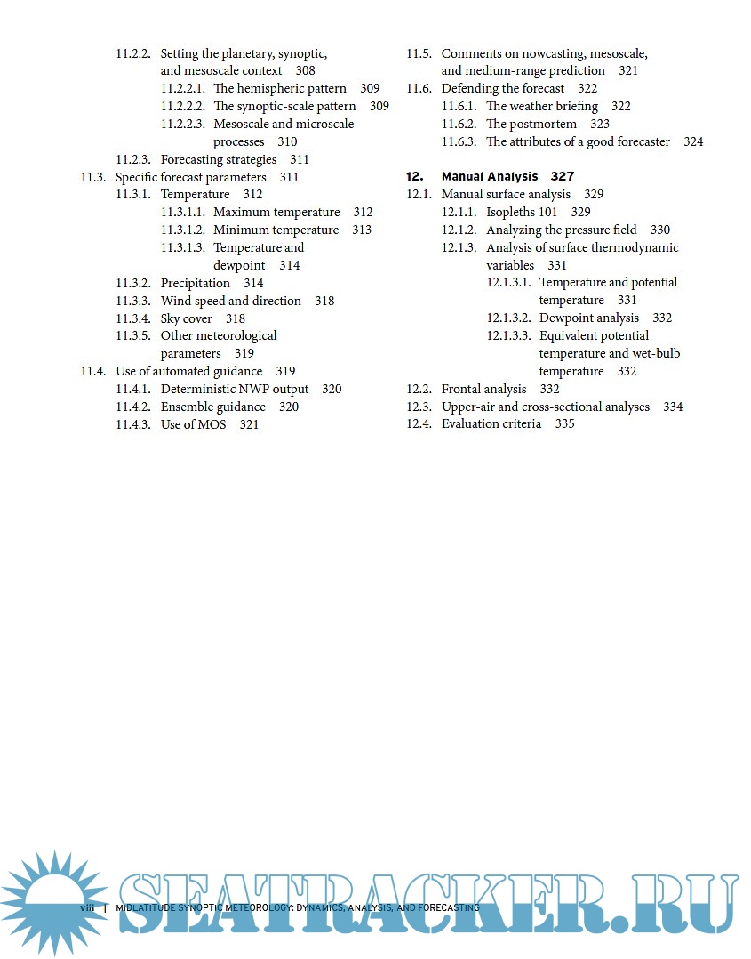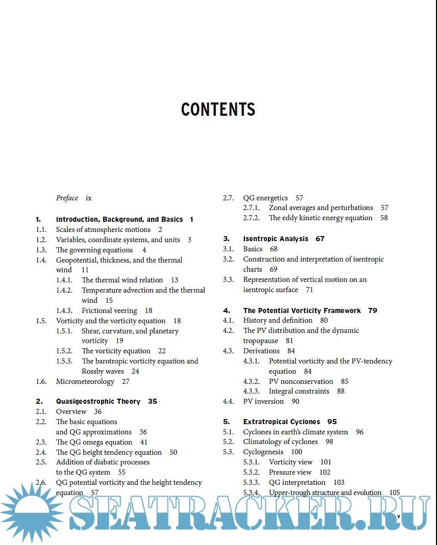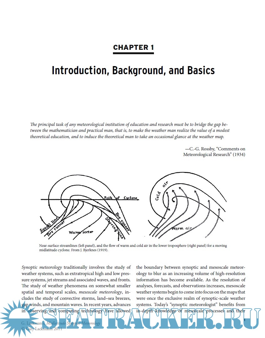 Year: 2012 Language: english Author: Gary Lackmann Genre: Manual Publisher: American Meteorological Society ISBN: 978-1-878220-10-3 Format: PDF Quality: eBook Pages count: 349 Description: The purpose of this book is twofold: deal with some areas of synoptic analysis and forecasting that are not covered in currently available texts, or are outdated in some areas, and offer a comprehensive, contemporary text that represents a complete reference for professionals and students. The text covers a large set of topics, with great emphasis on application, about mid-latitude synoptic meteorology. At the end of each chapter are included review and study questions, problems, references and further reading suggestion. As there are few textbooks that discuss the human forecast process, a particular focus is addressed by chapter 11, that benefits from large input from many current and former members of the professional forecasting community. At the end of the book, a brief chapter on manual analysis is included.